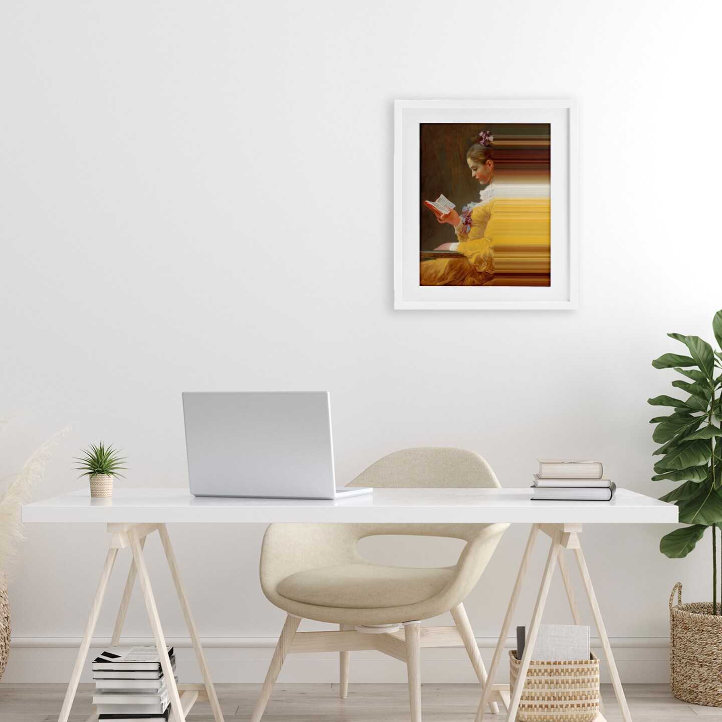 Stupell Industries Vintage Lady Reading with Gradient Streaks Framed Print Under Glass, design by Seven Trees Design