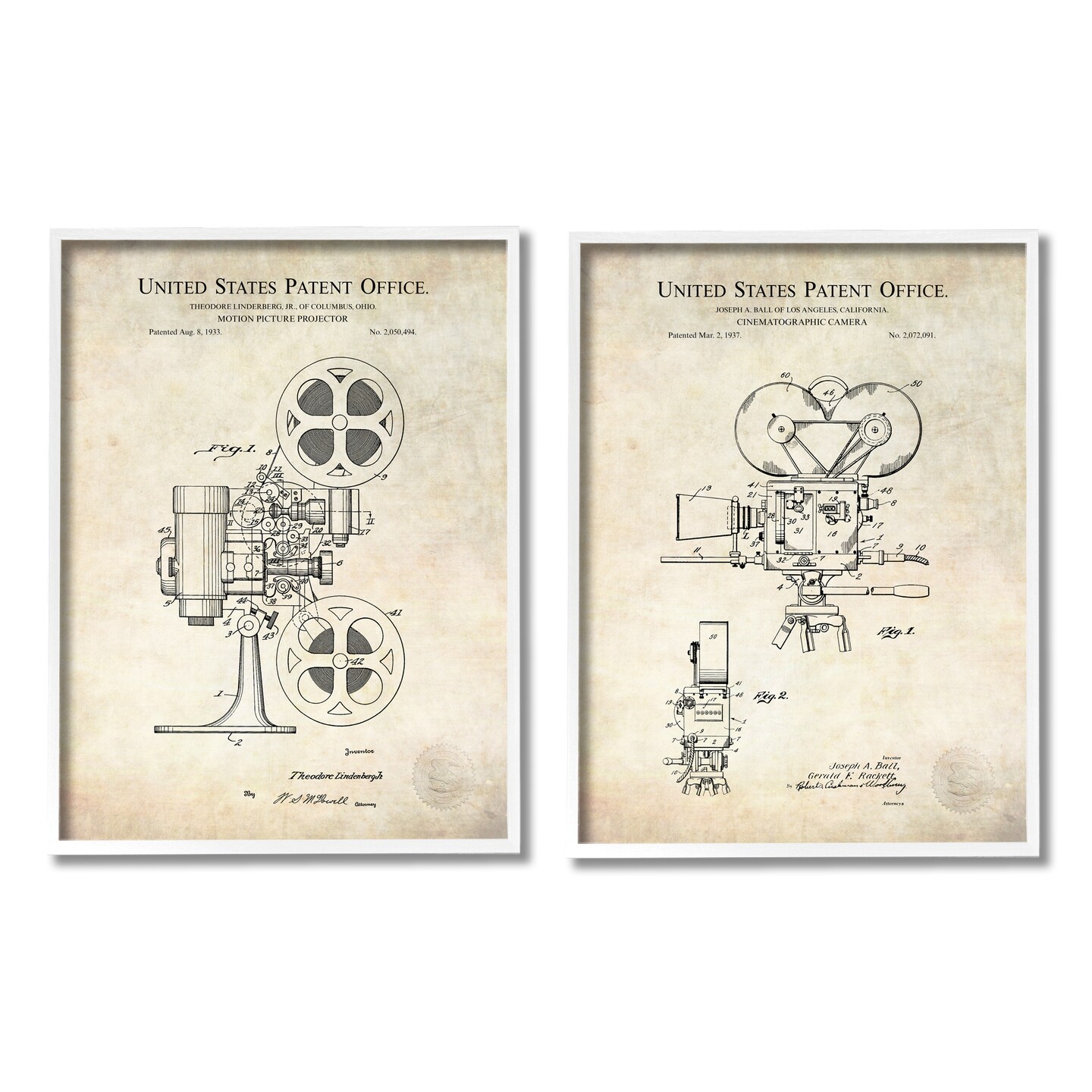 Stupell Industries Vintage Movie Camera Cinema Projector 2pc Framed Giclee Set Design By Karl Hronek