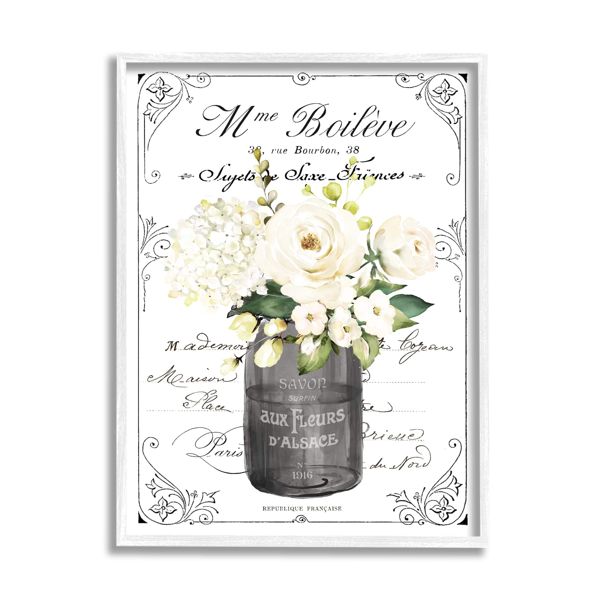 Stupell Industries Vintage Parisian Bathroom Floral Bouquet White Flowers Framed Wall Art