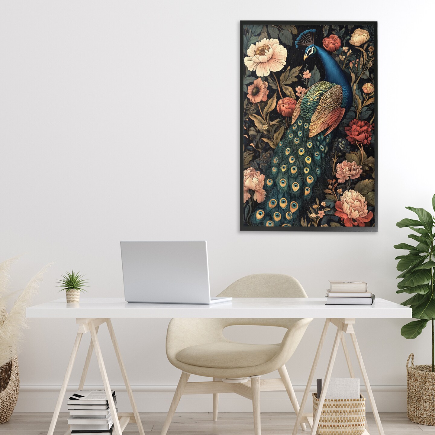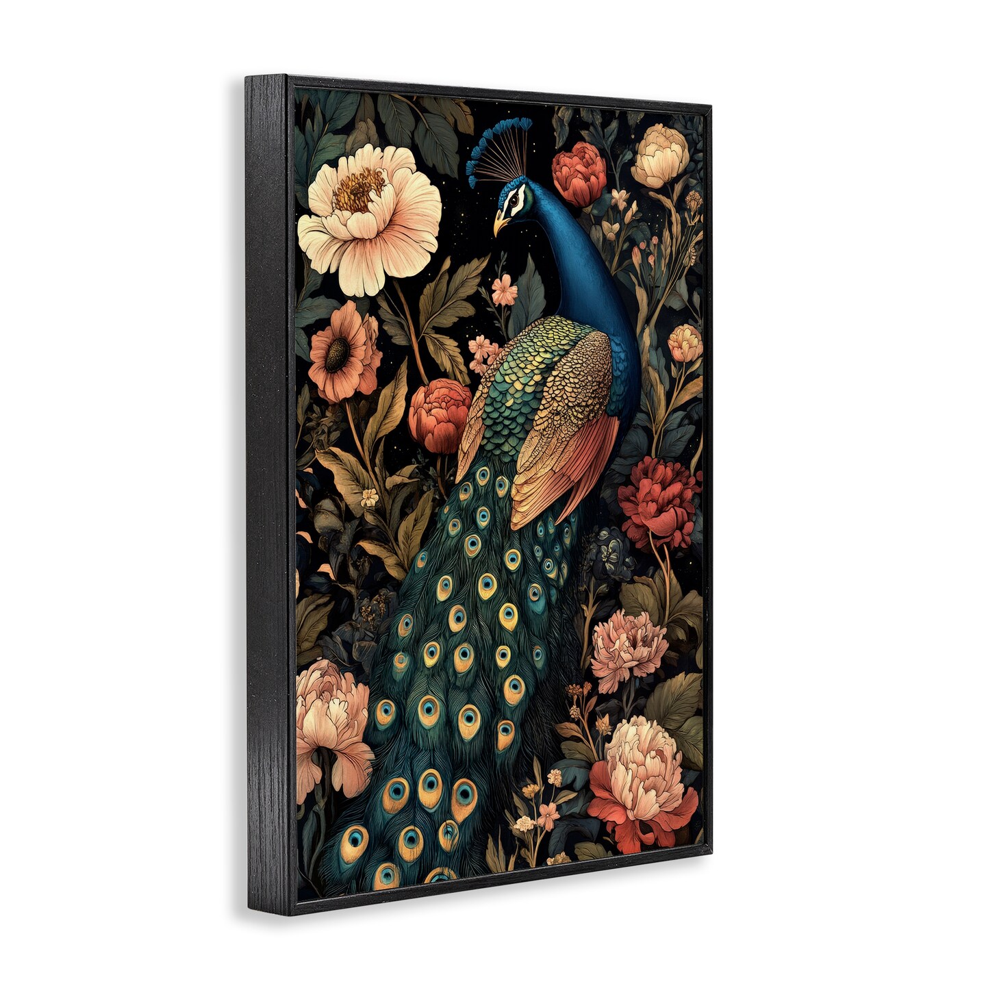 Stupell Industries Vintage Peacock in Florals Framed Giclee, design by Petal Prints Design