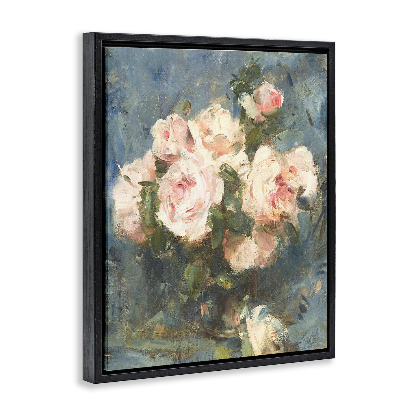 Stupell Industries Vintage Pink Roses Blue Background Black Framed Floater Canvas Wall Art, design by Leah Straatsma
