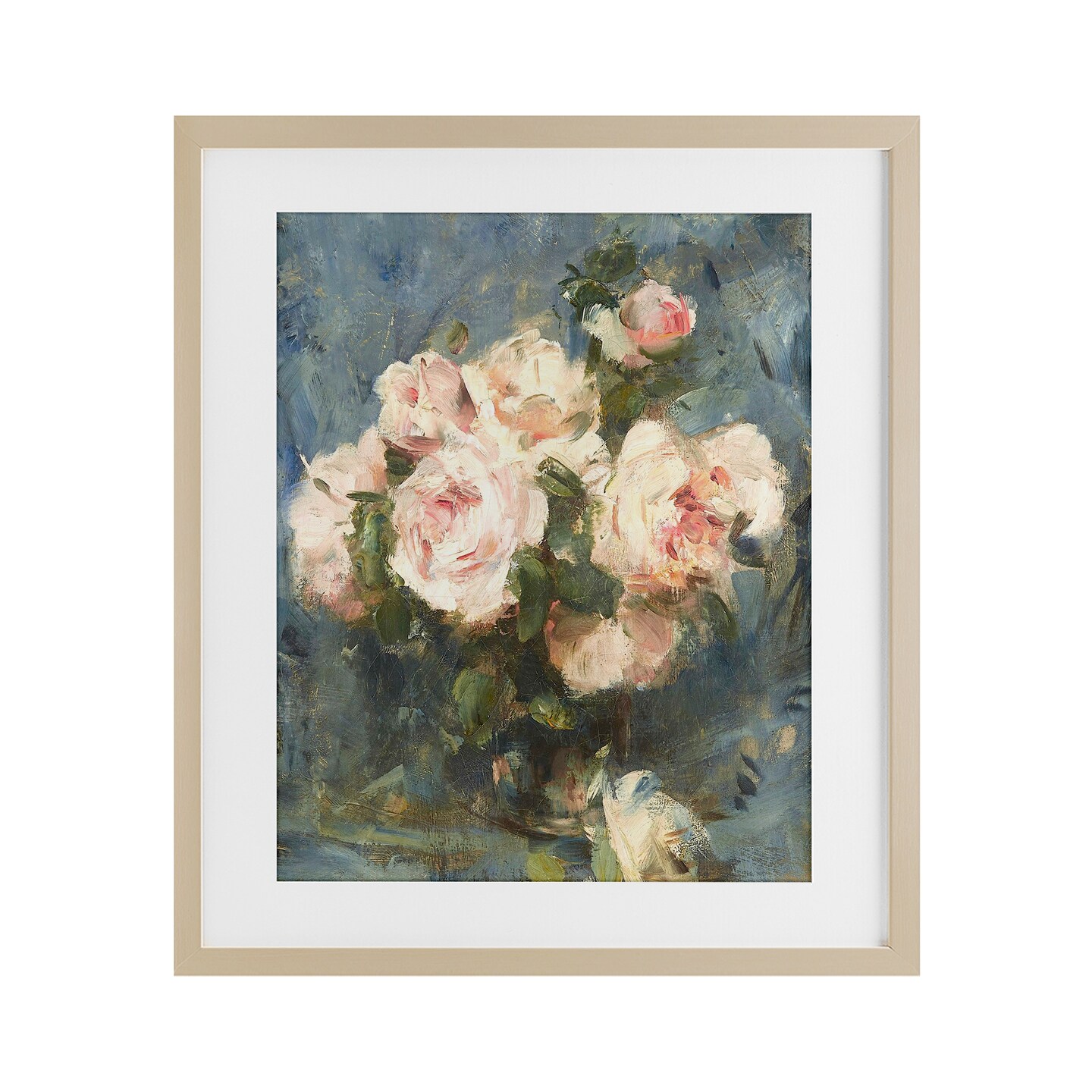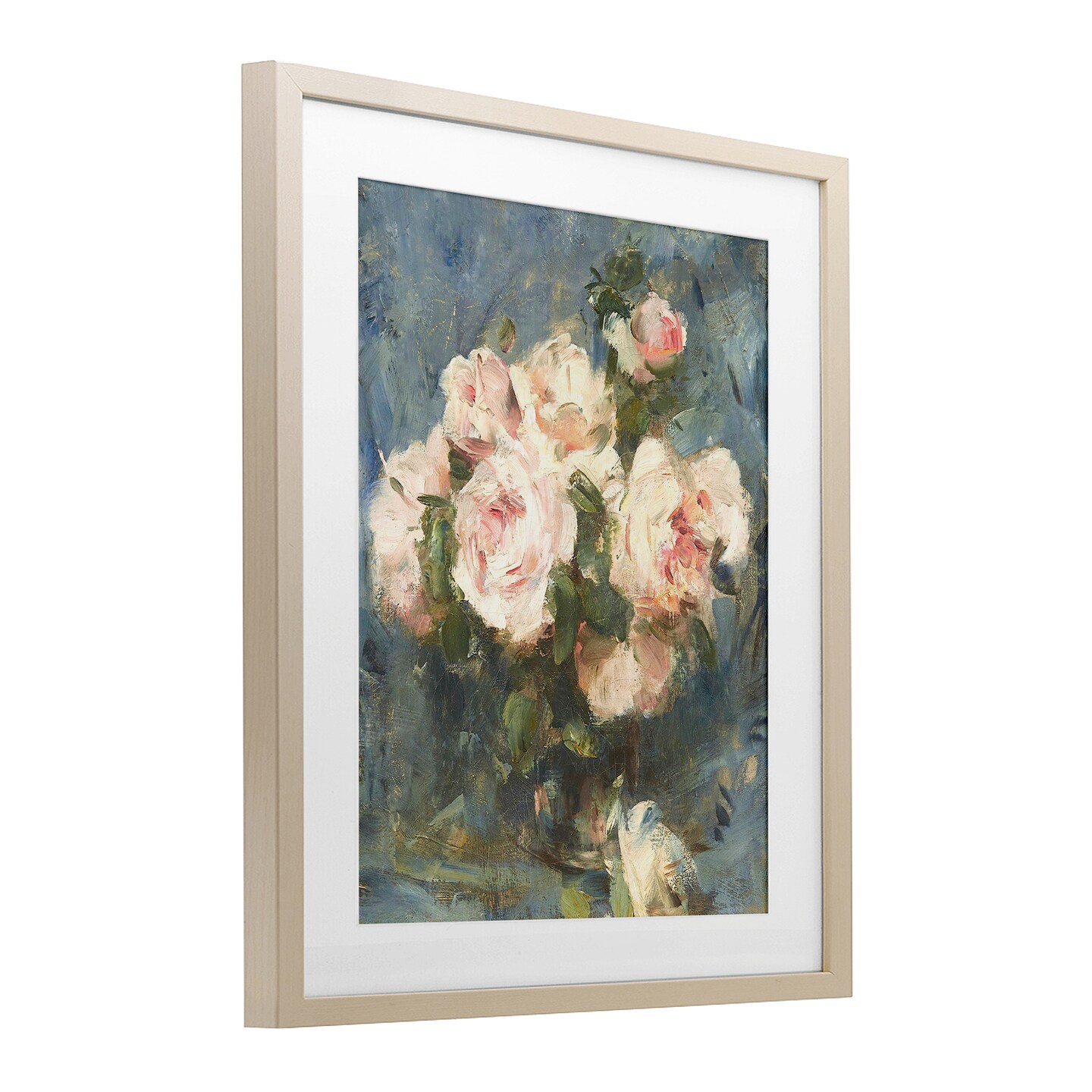 Stupell Industries Vintage Pink Roses Blue Background Black Framed Print Under Glass, design by Leah Straatsma