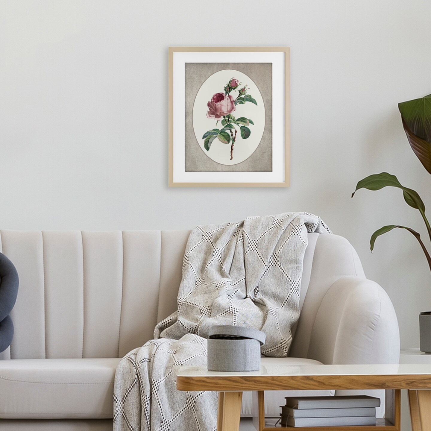 Stupell Industries Vintage Rose within Oval Framed Print Under Glass, design by Lettered and Lined