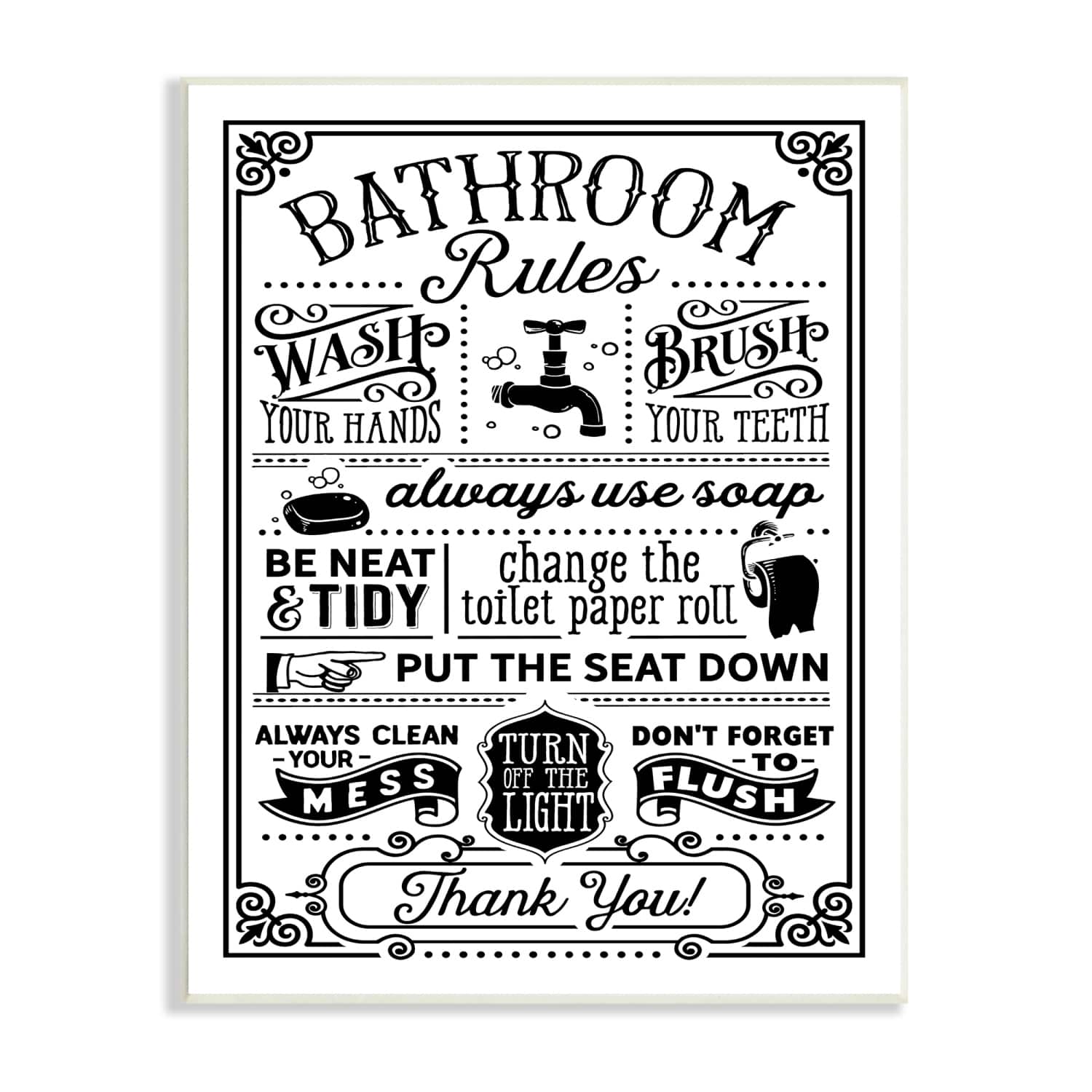 Stupell Industries Vintage Style Bathroom Rules Diagram List Border Wall Plaque Art