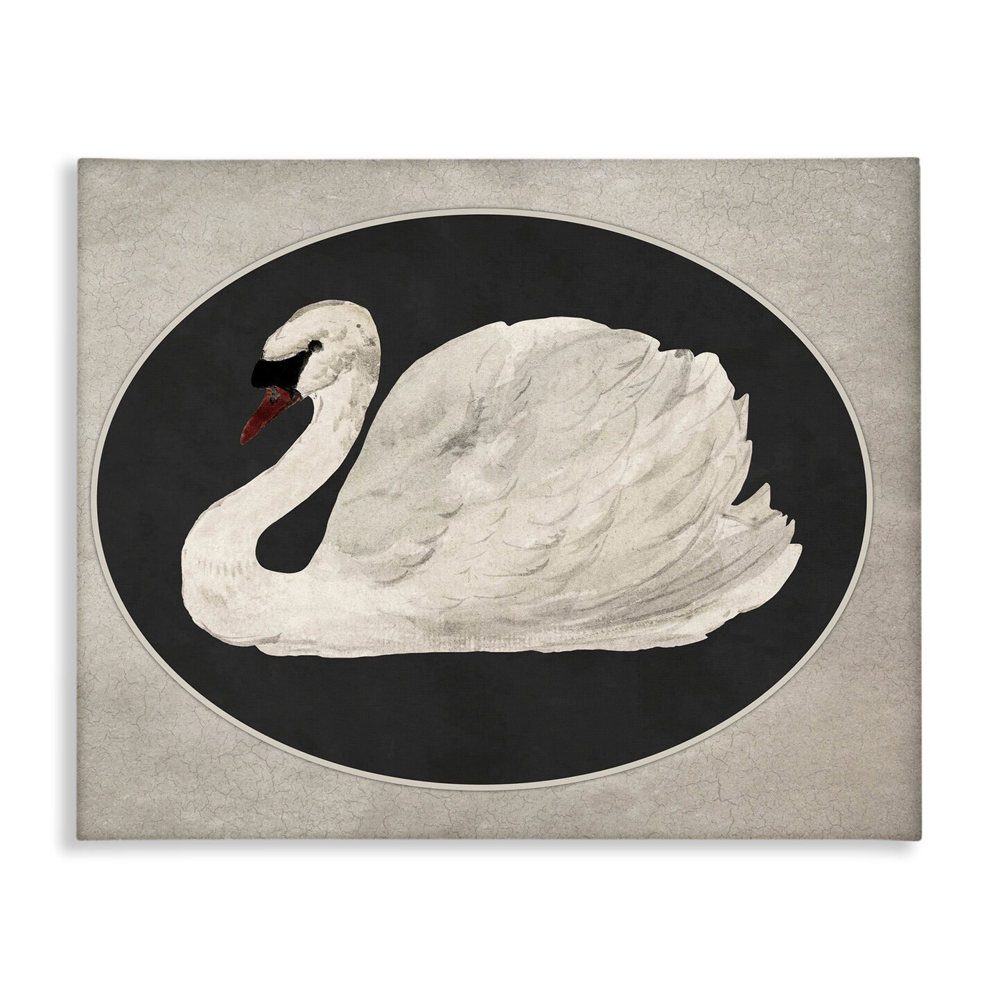 Stupell Industries Vintage Swan in Rounded Oval Canvas By Lettered and Lined