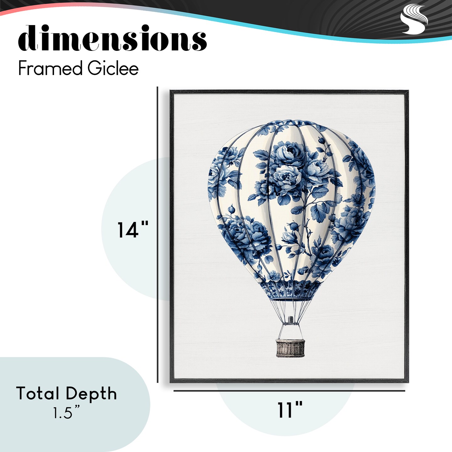Stupell Industries Vintage Toile Hot Air Balloon Framed Giclee, design by Lettered and Lined
