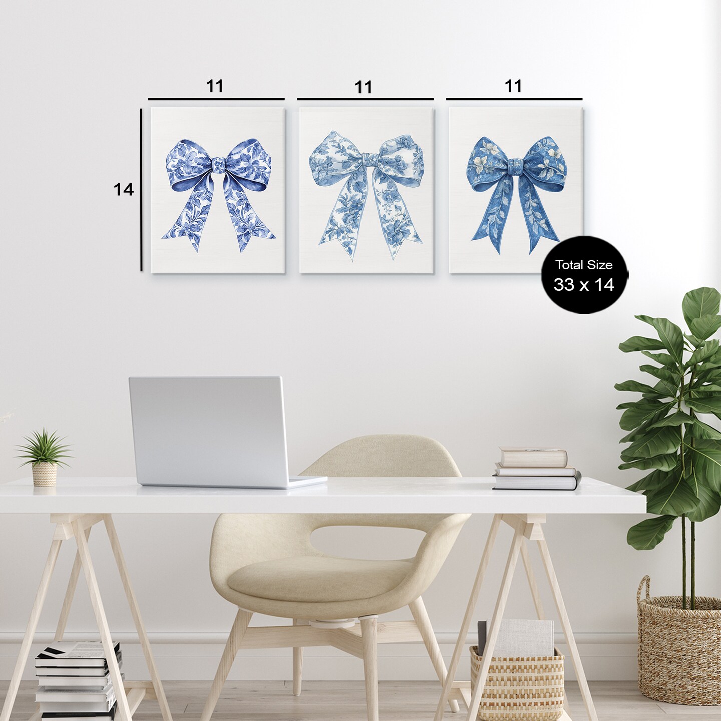Stupell Industries Vintage Toile Pattern Bows 3pc Canvas Set, design by Lettered and Lined