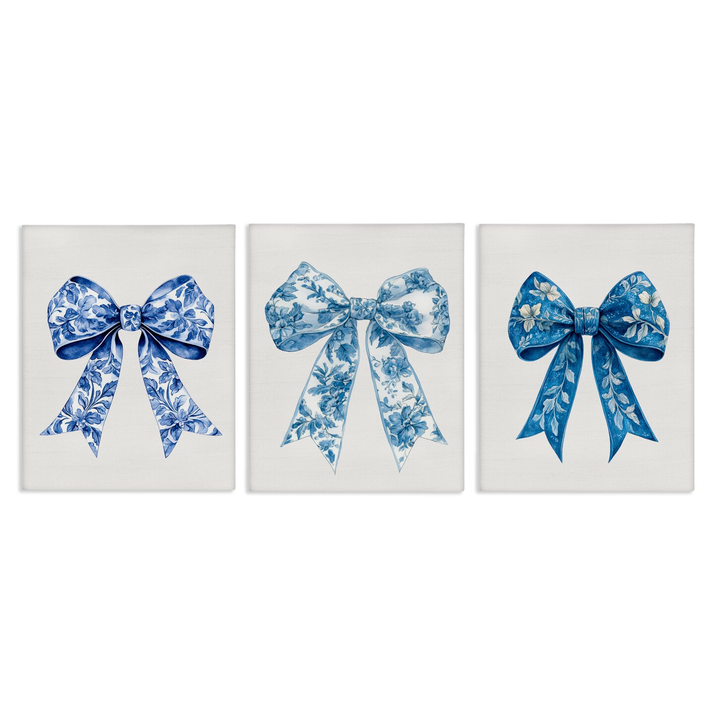 Stupell Industries Vintage Toile Pattern Bows 3pc Canvas Set, design by Lettered and Lined