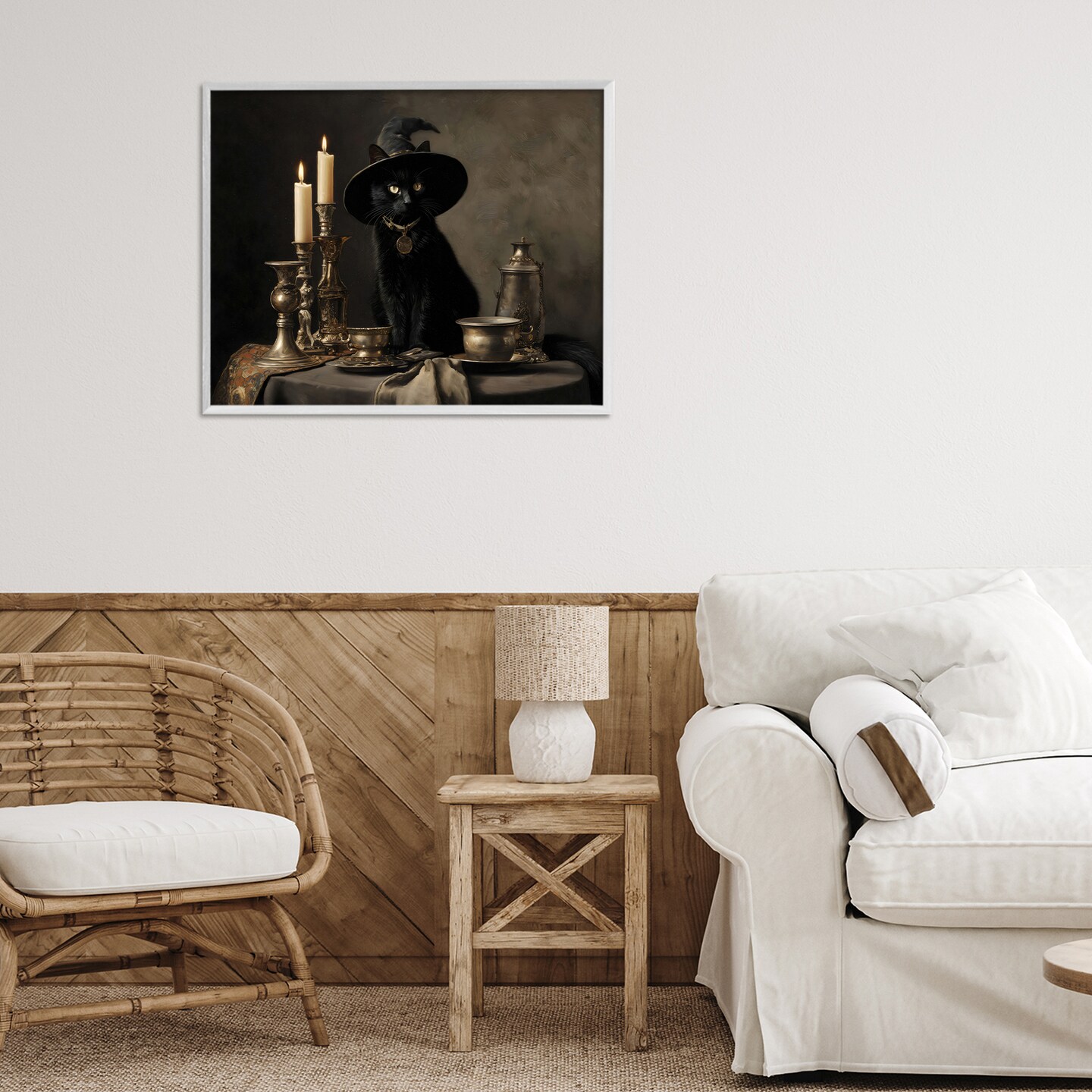 Stupell Industries Vintage Witchy Black Cat Framed Giclee, design by Arlington Prints