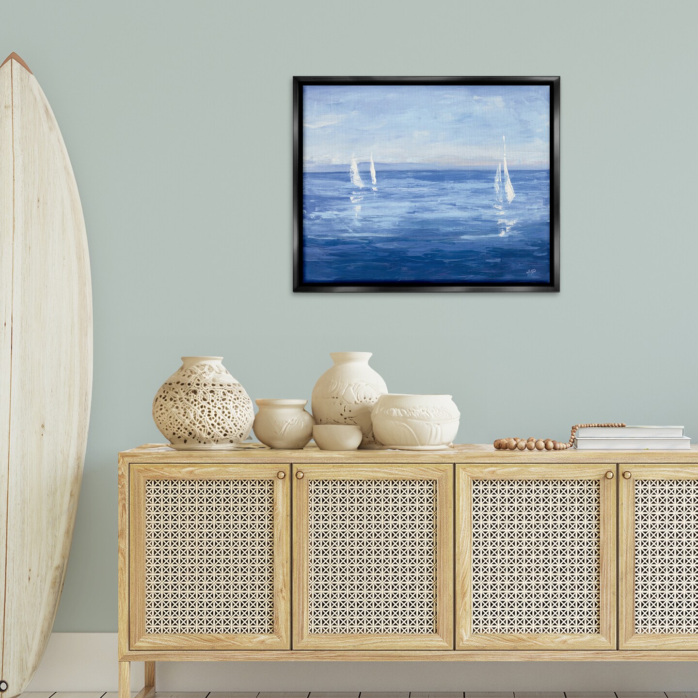 Stupell Industries Vivid Boats Open Sail Floater Framed Canvas Wall Art Design by Julia Purinton