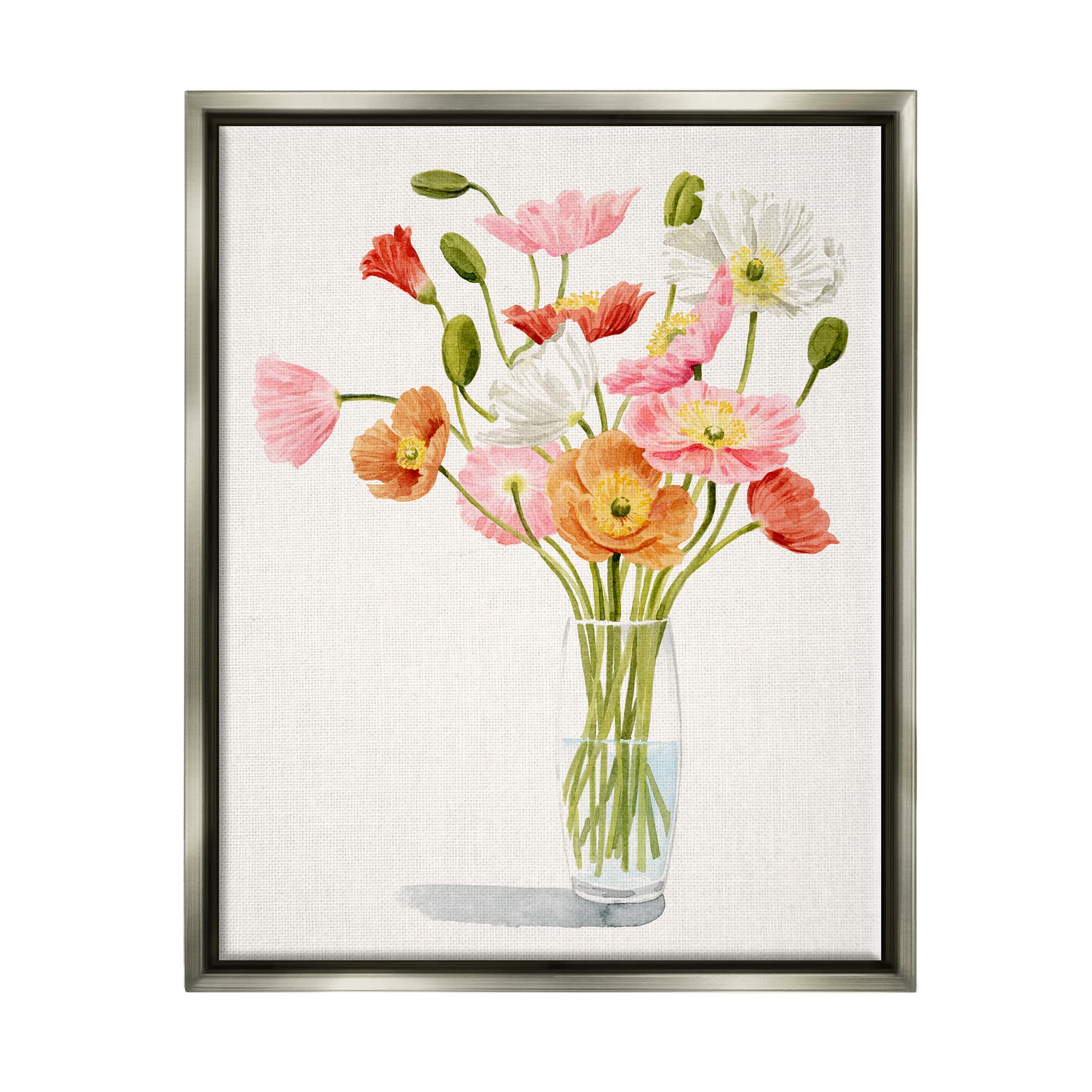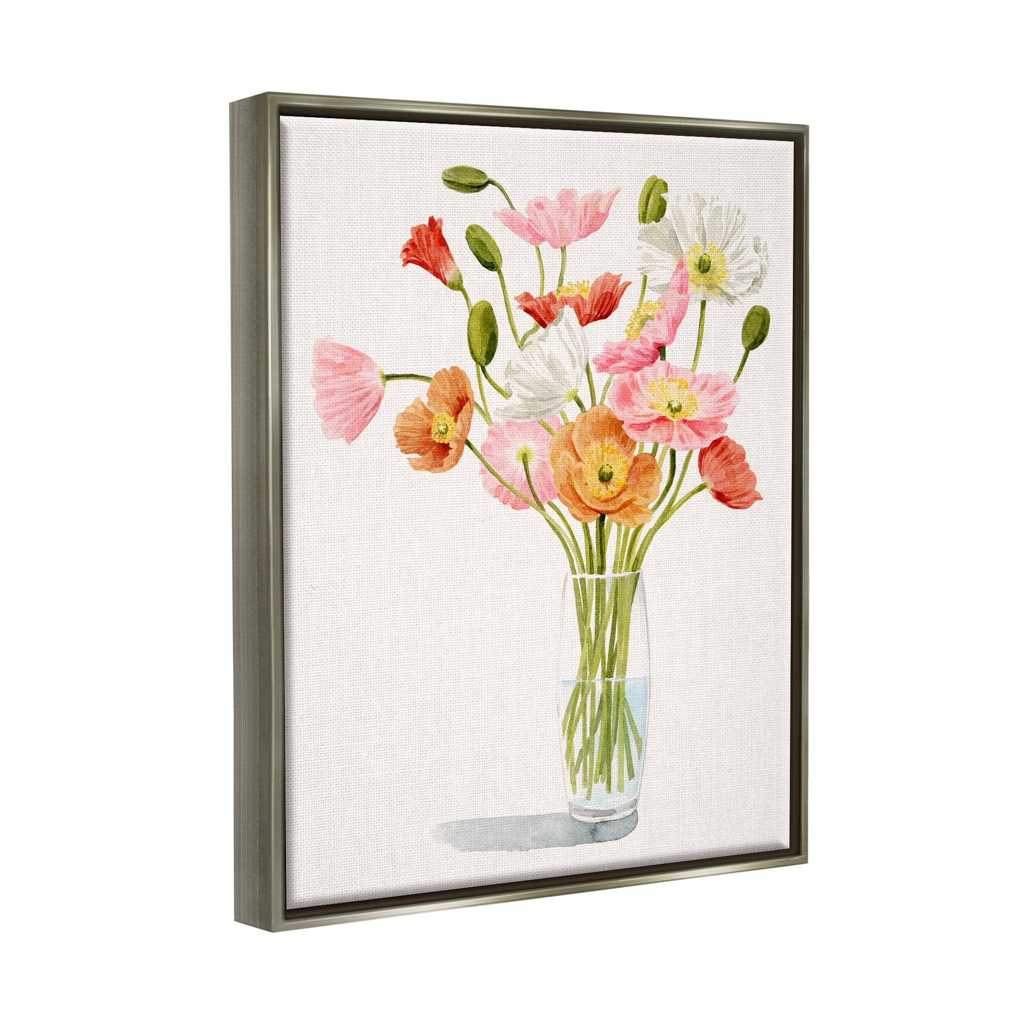 Stupell Industries Vivid Poppies Glass Floral Bouquet Arrangement Framed Floater Canvas Wall Art
