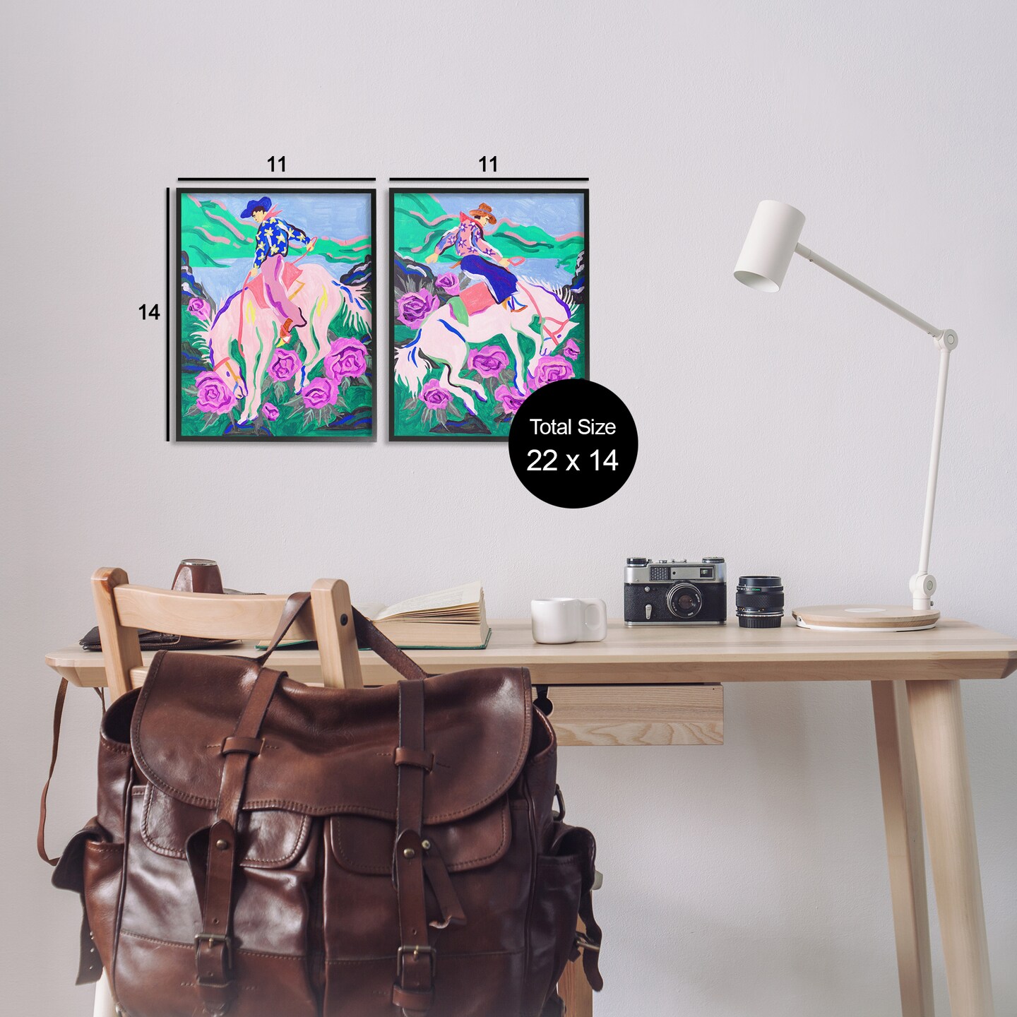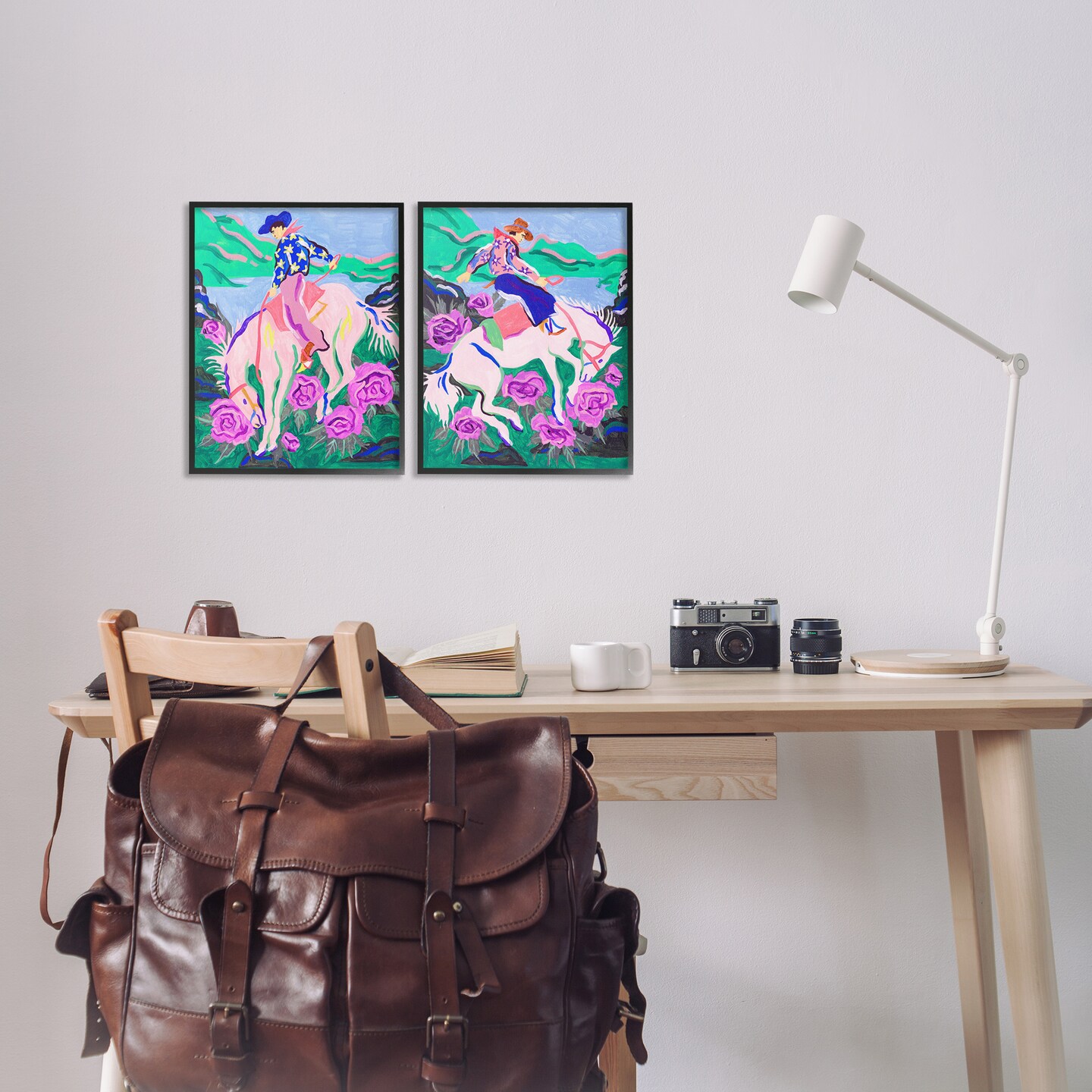 Stupell Industries Vivid Rearing Cowboys 2pc Framed Giclee Wall Art Set Design by Melissa Wang