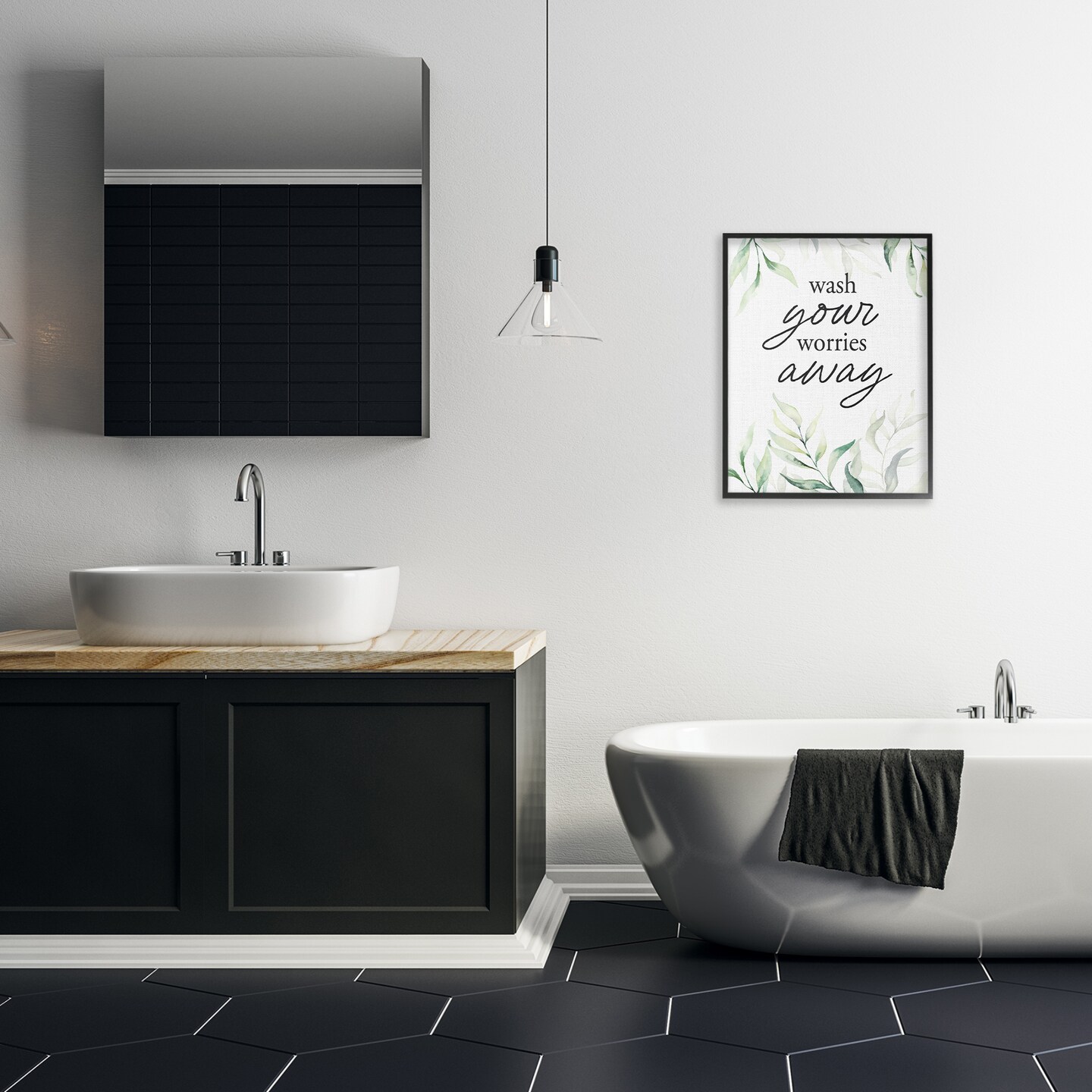 Stupell Industries Wash Worries Away Leaves Framed Giclee, design by Lettered and Lined