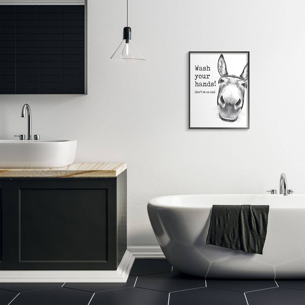 Stupell Industries Wash Your Hands Donkey Quote Bathroom Animal Humor Framed Wall Art