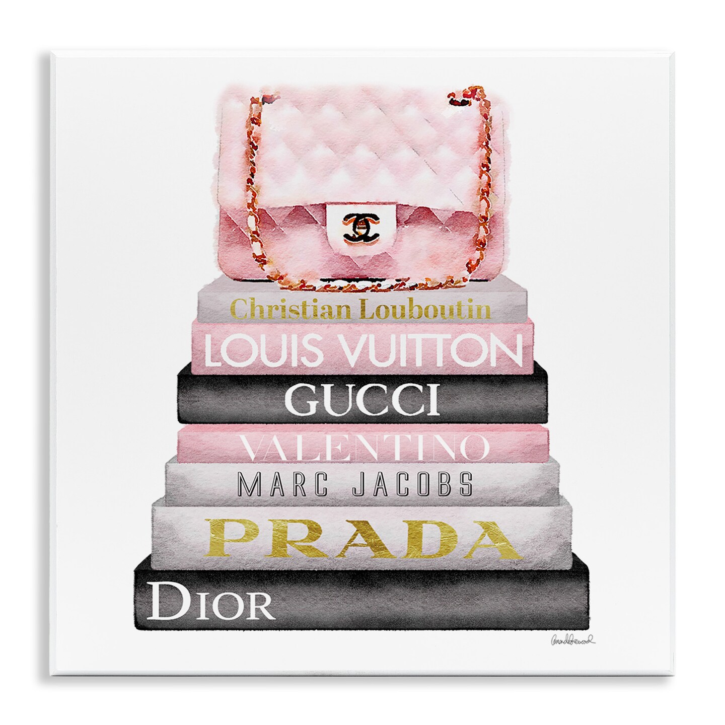 Stupell Industries Watercolor High Fashion Bookstack Wall Plaque Art