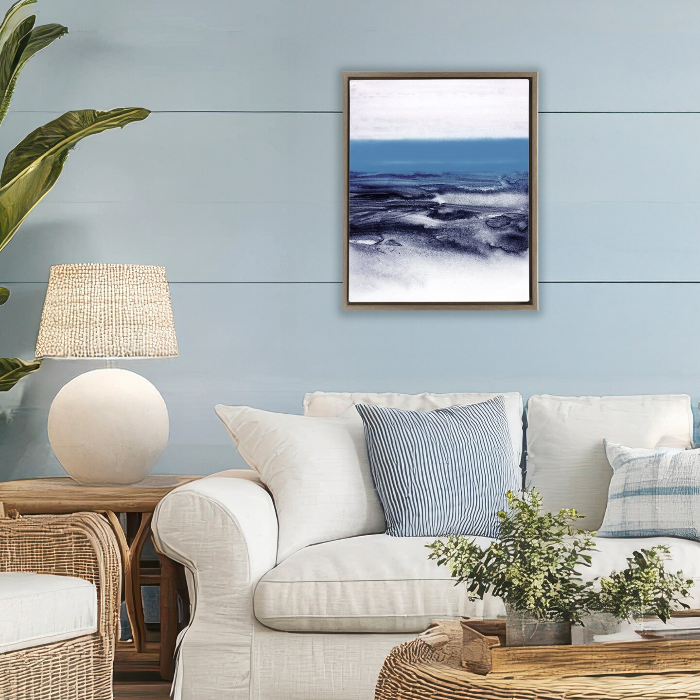 Stupell Industries Watercolor Landscape in Blue Floating Frame, design by 1x