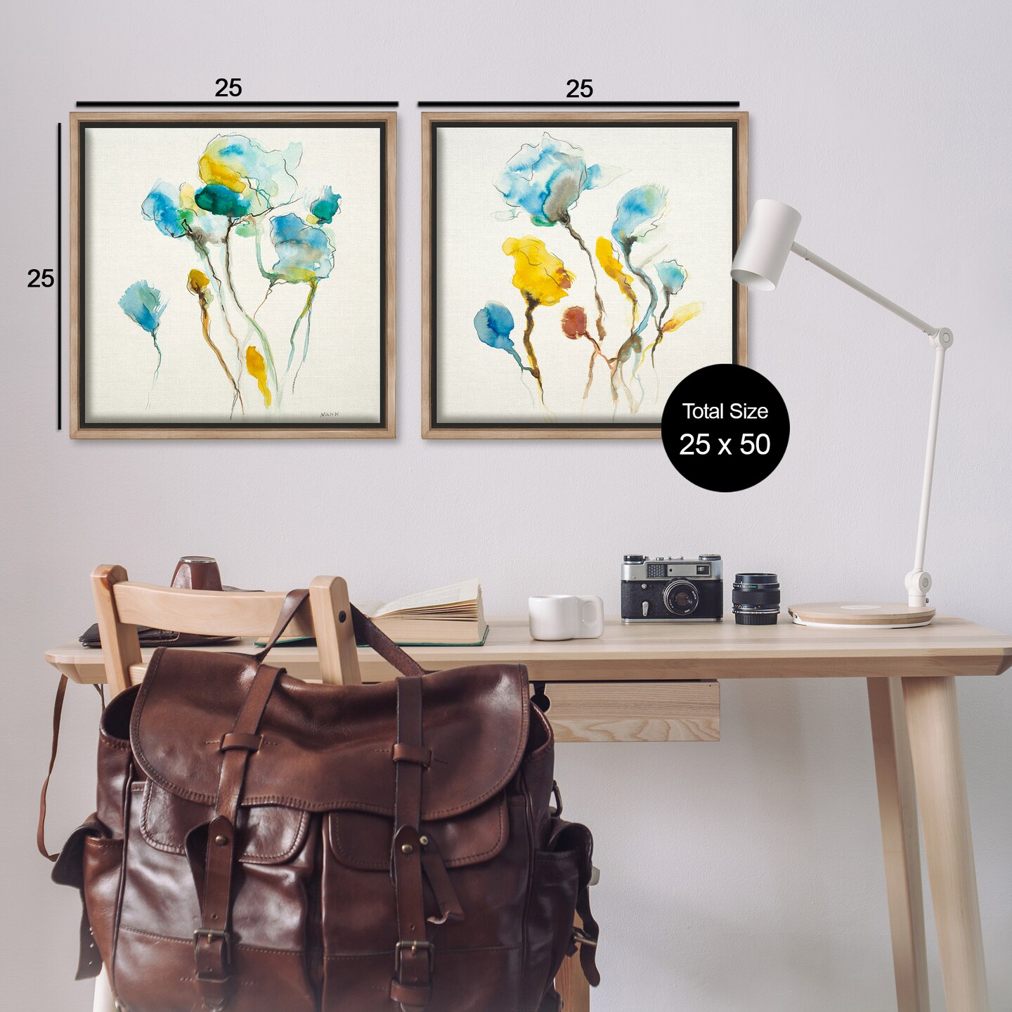 Stupell Industries Watercolor Teal & Yellow Flowers 2 pc Framed Floater Canvas Wall Art Set Design by Patti Mann
