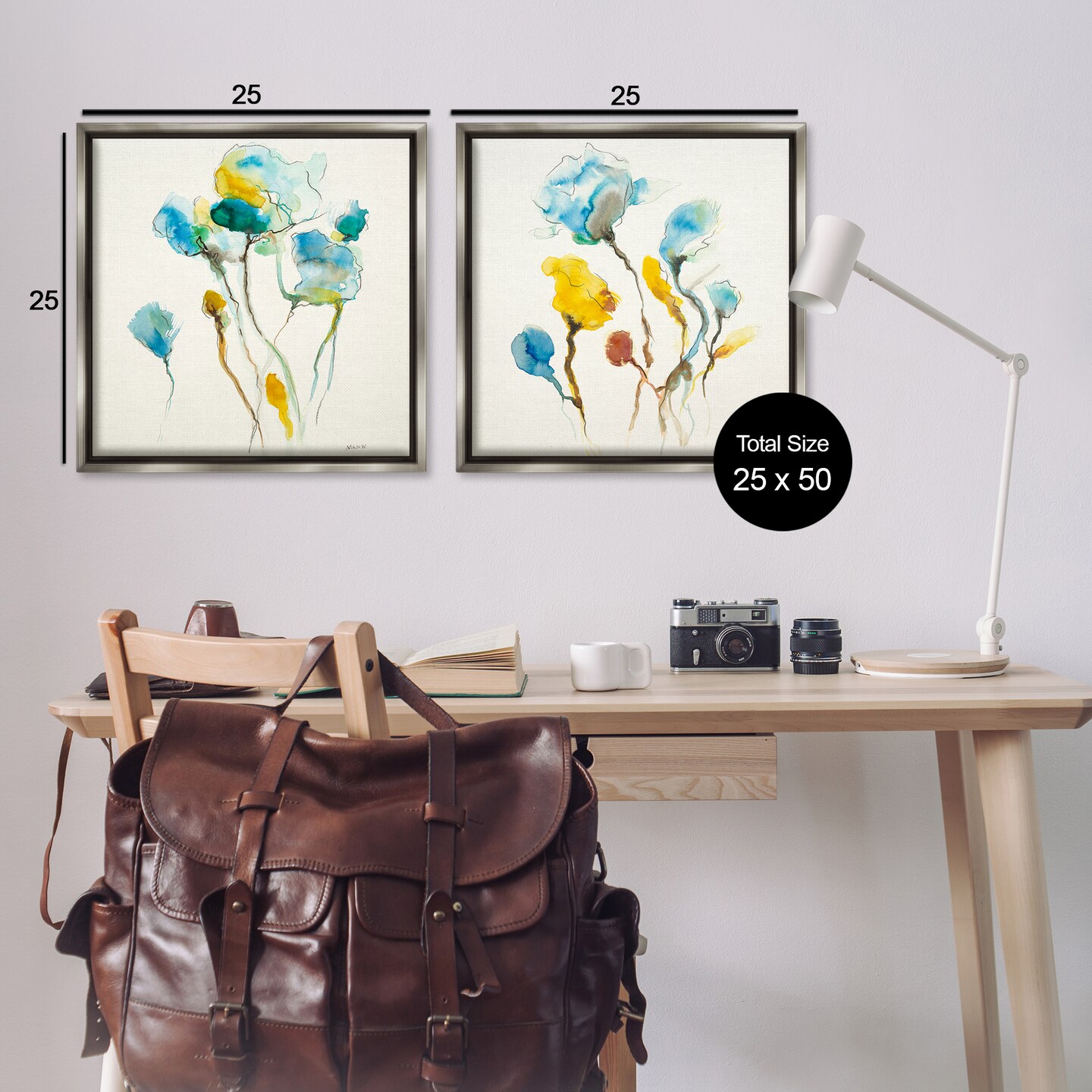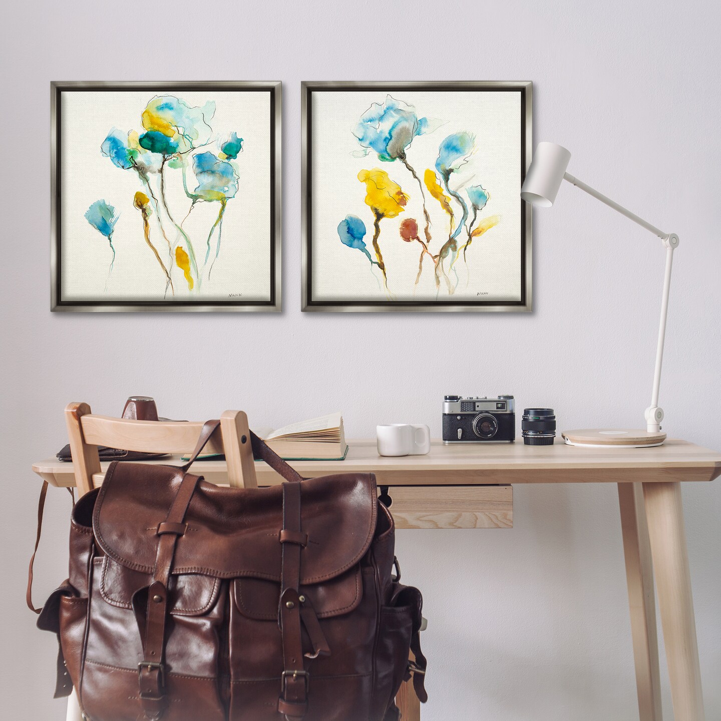 Stupell Industries Watercolor Teal & Yellow Flowers 2 pc Framed Floater Canvas Wall Art Set Design by Patti Mann