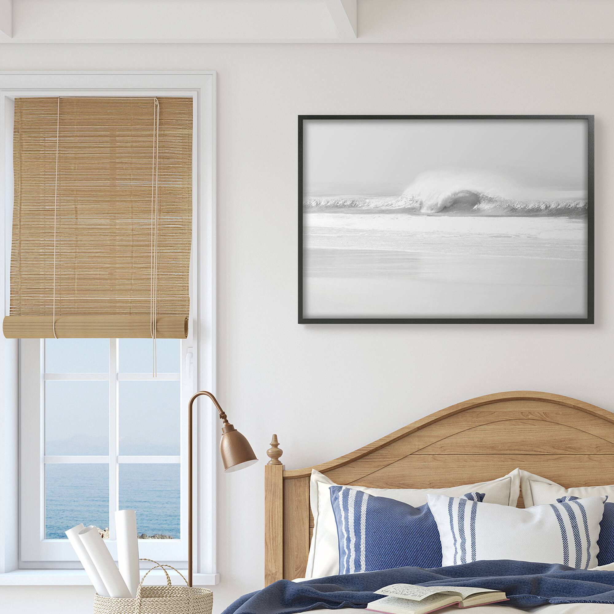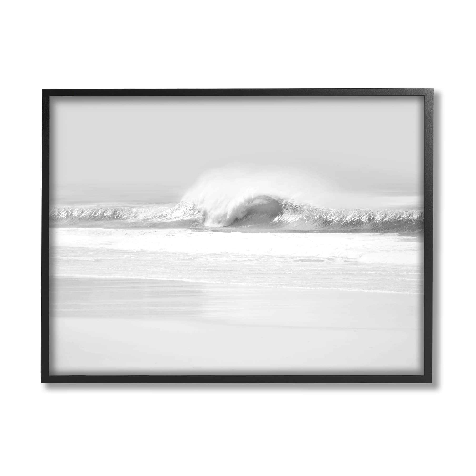 Stupell Industries Waves Crashing onto Beach Black and White in Black Frame Wall Art