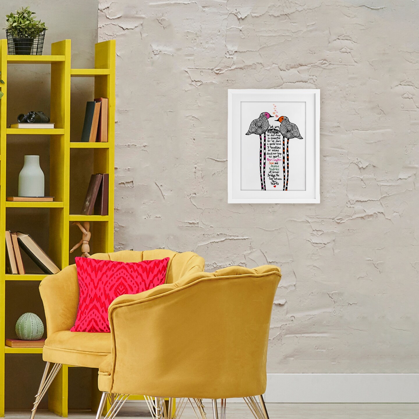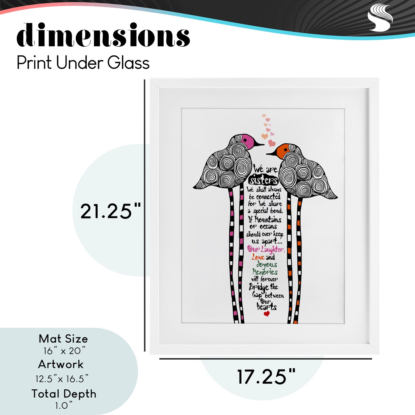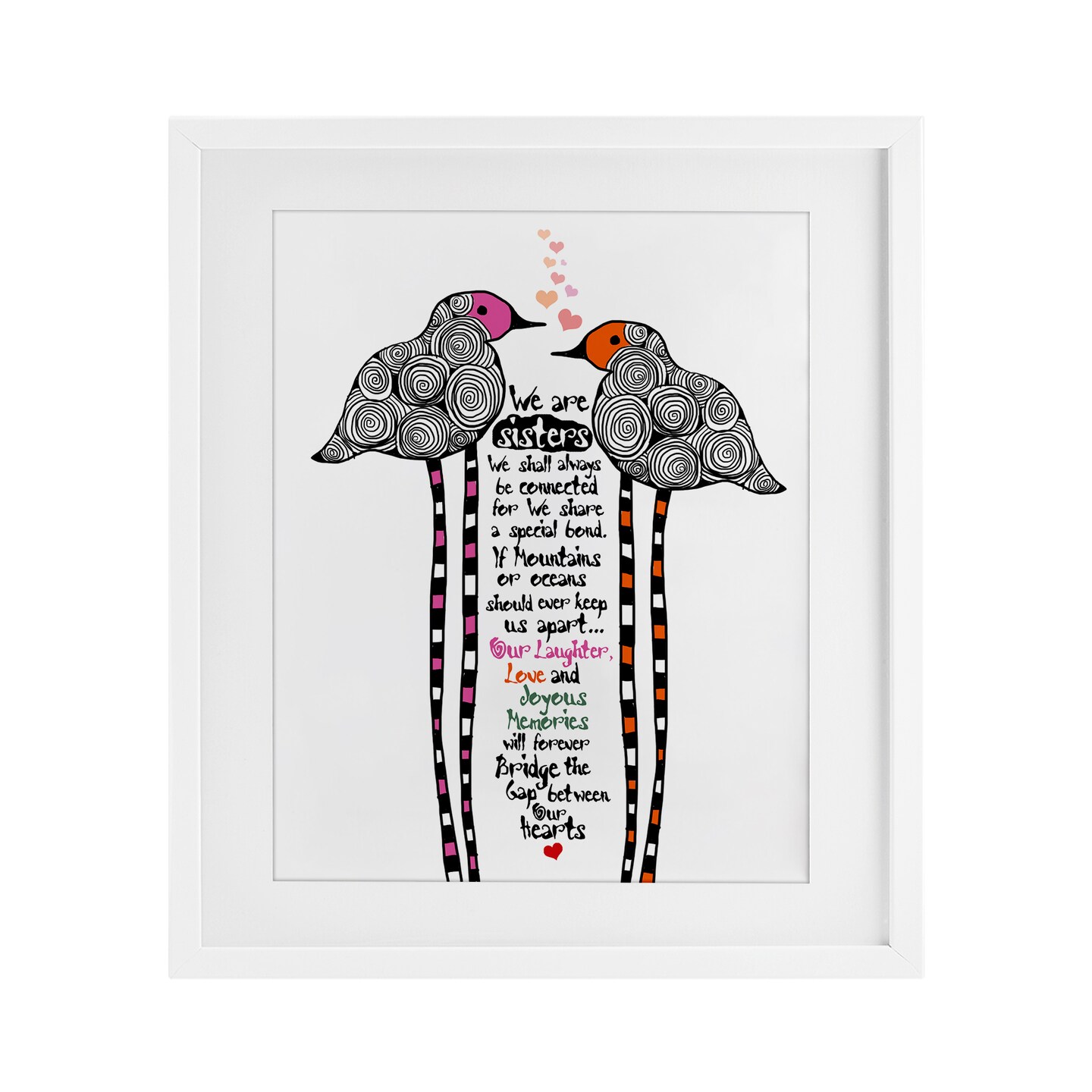 Stupell Industries We Are Sisters Bird Duo Framed Print Under Glass, design by Suzanne Millius