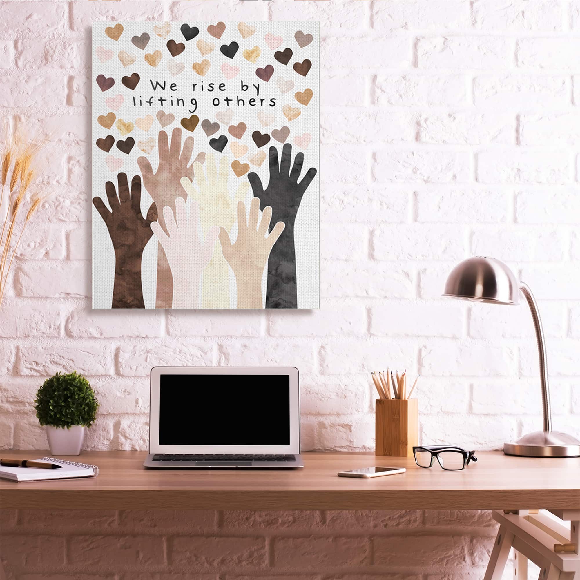 Stupell Industries We Rise by Lifting Others Quote Hands Hearts Canvas Wall Art