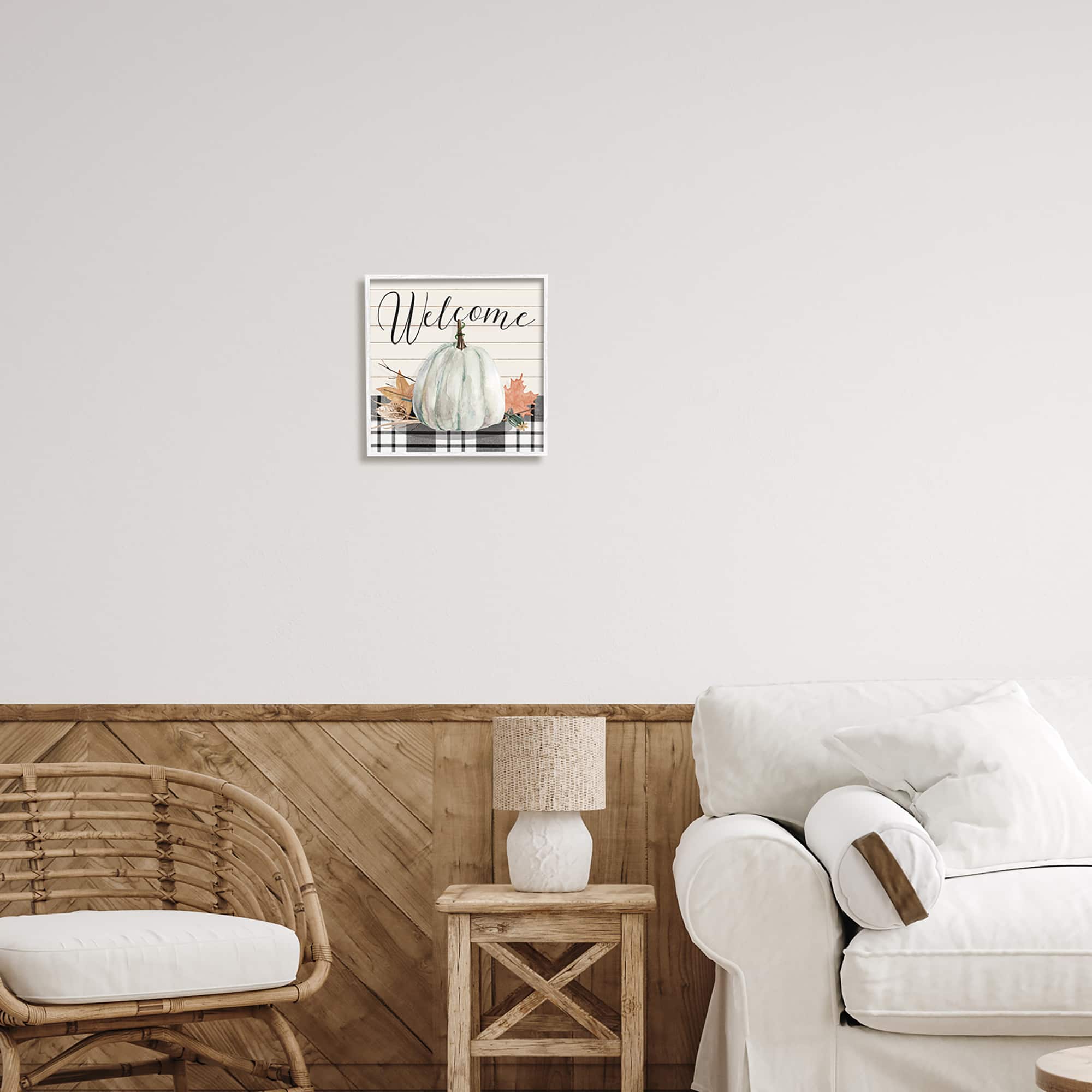 Stupell Industries Welcome Plaid Pumpkin Sign Framed Giclee Art