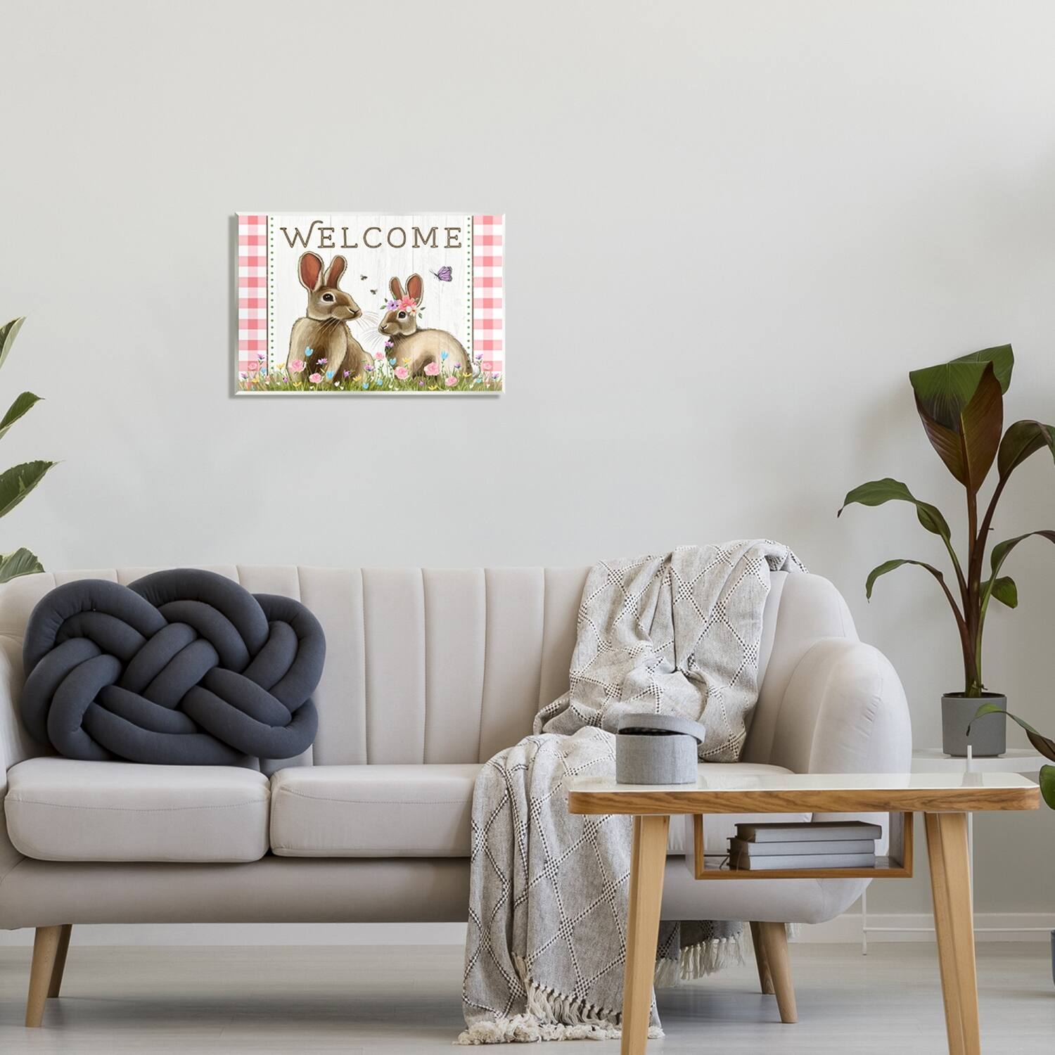 Stupell Industries Welcome Plaid Spring Garden Rabbits Wall Plaque Art