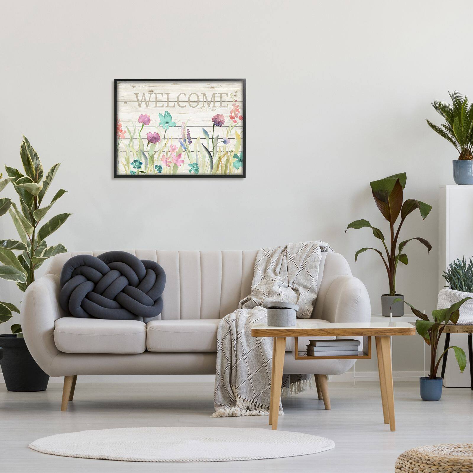 Stupell Industries Welcome Sign Spring Wildflower Meadow Rustic Pattern Framed Wall Art
