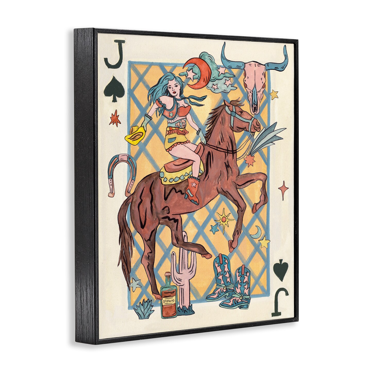 Stupell Industries Western Cowgirl Playing Card Framed Giclee Wall Art Design by Joris Hoefnagel