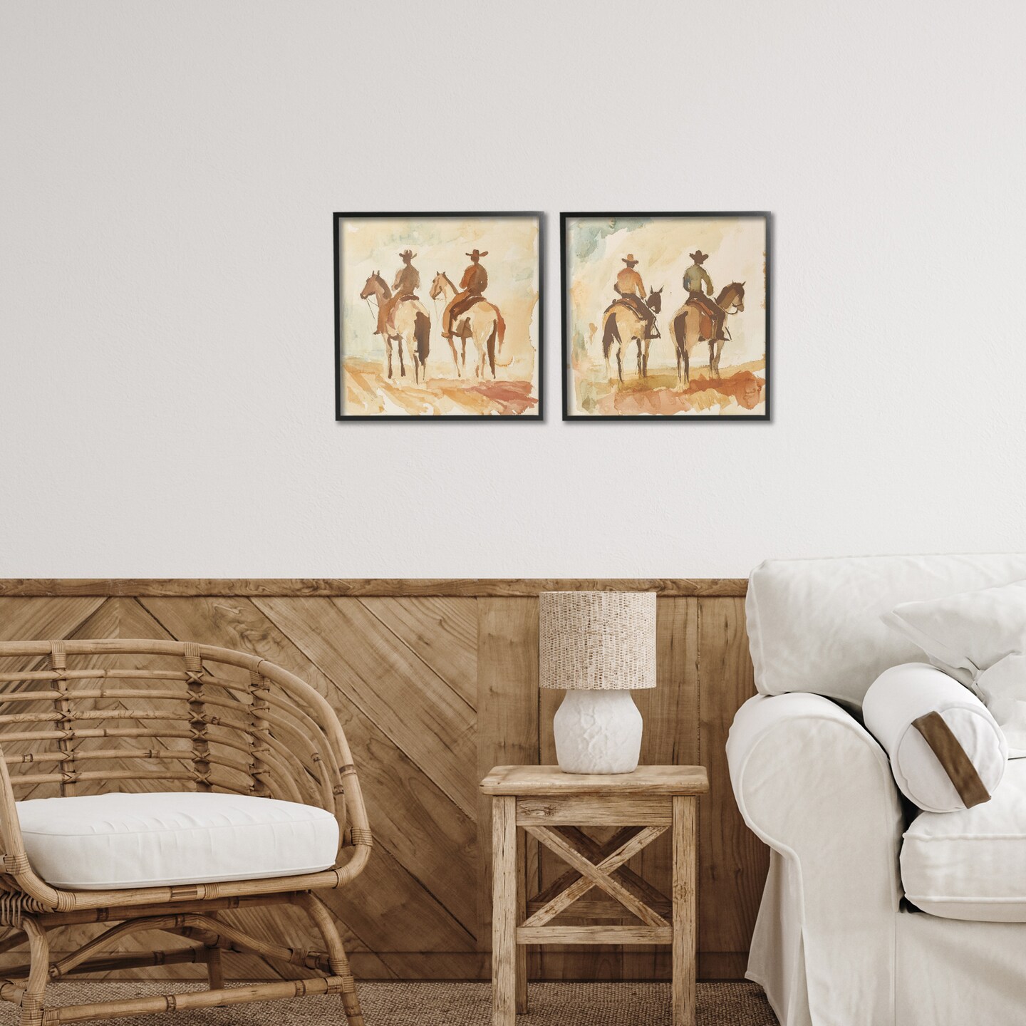 Stupell Industries Western Watercolor Cowboy Pairs 2pc Framed Giclee Set, design by Petal Prints Design