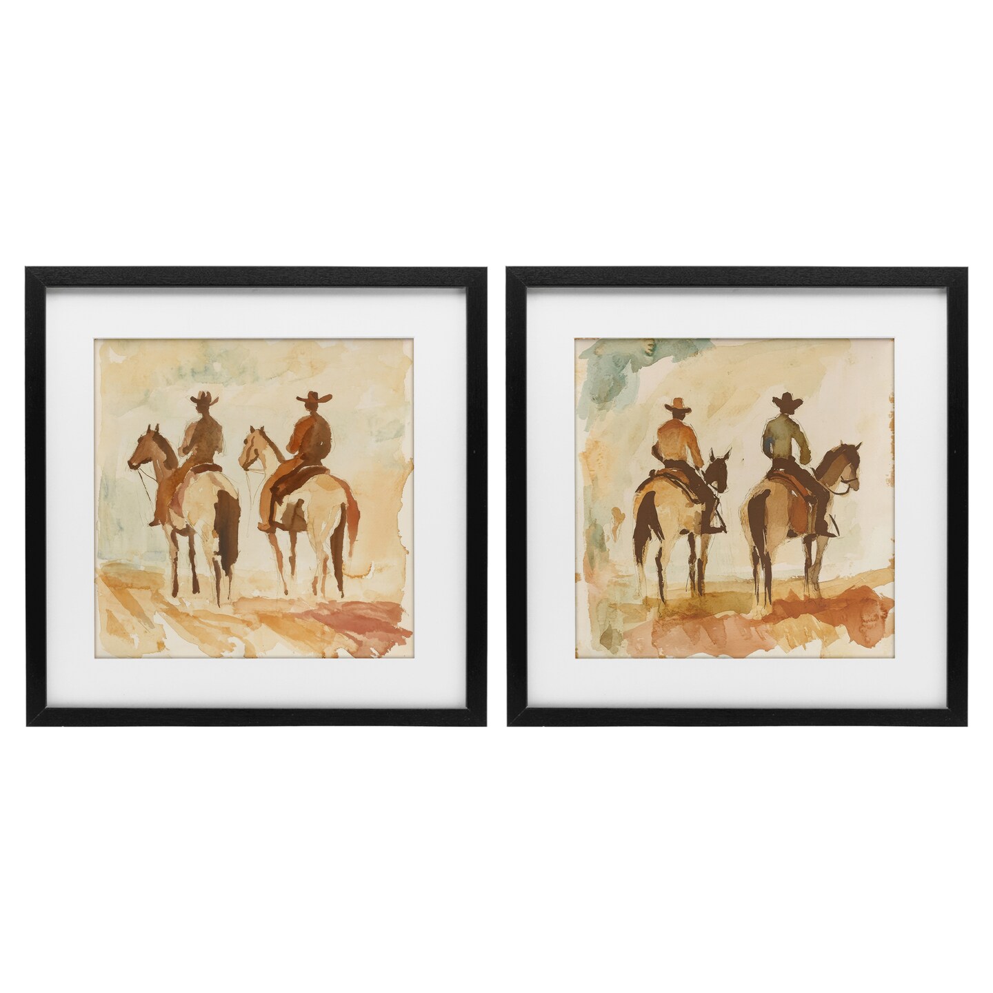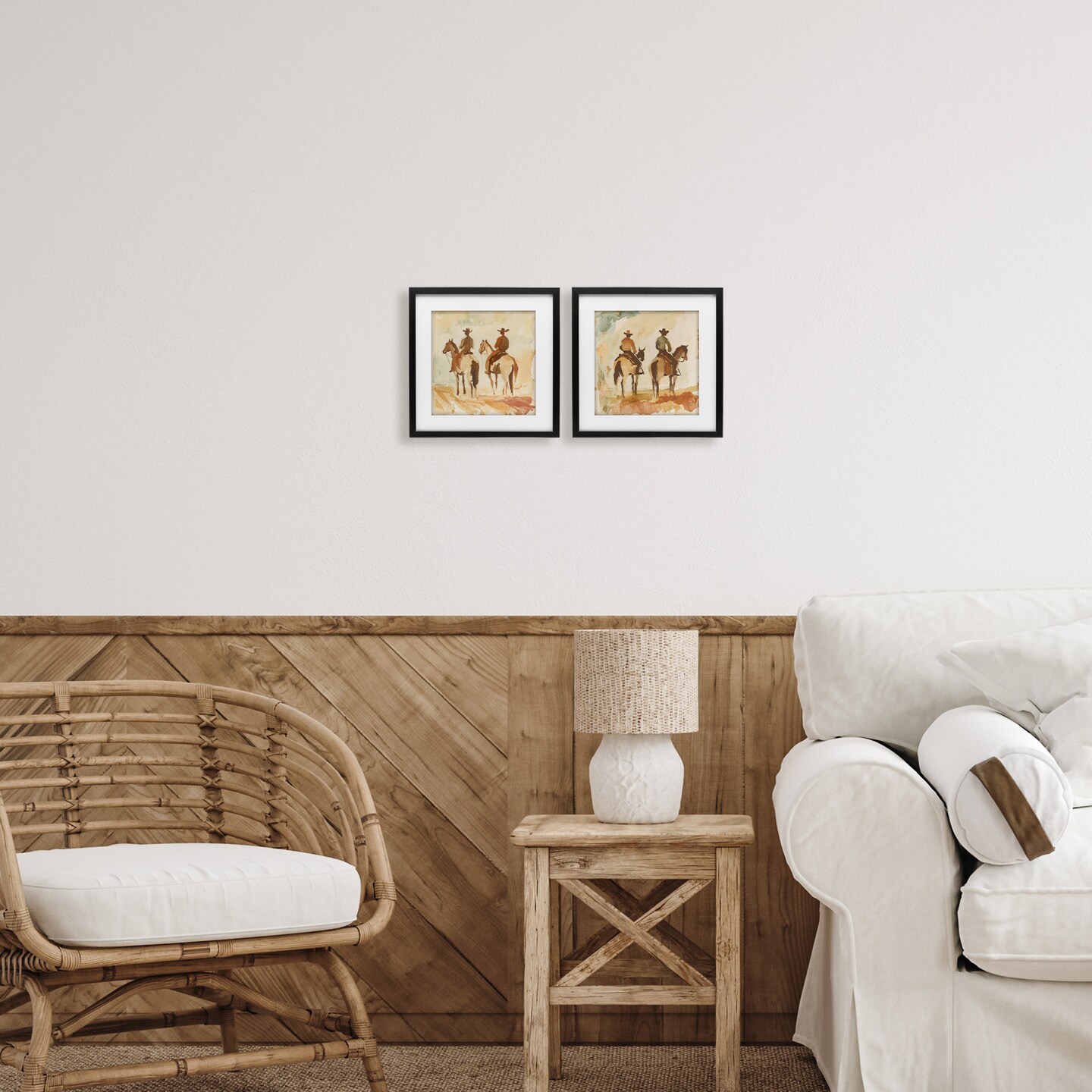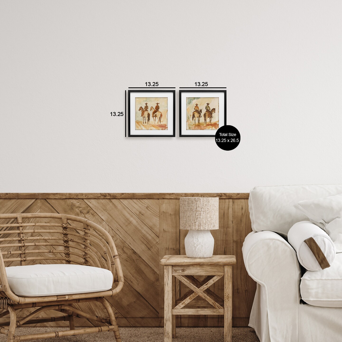 Stupell Industries Western Watercolor Cowboy Pairs 2pc Framed Print Under Glass Set, design by Petal Prints Design