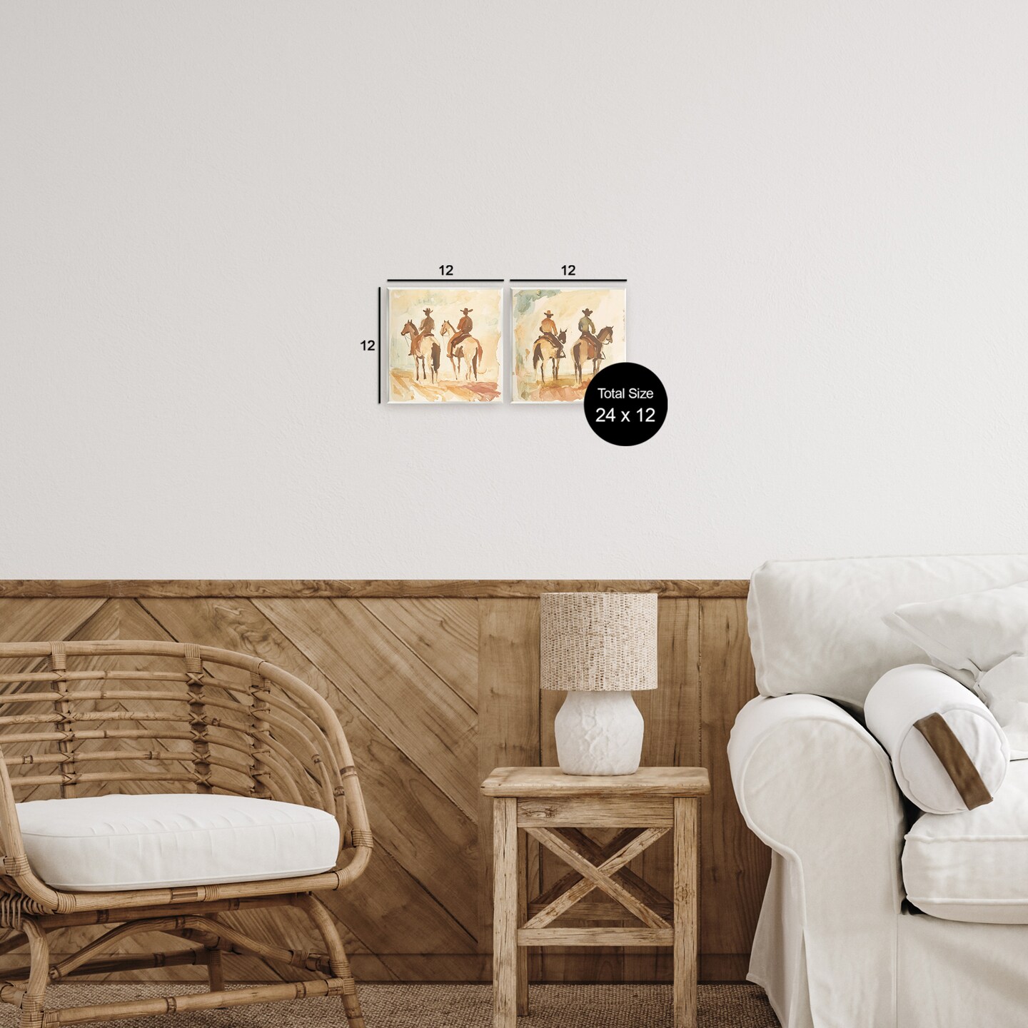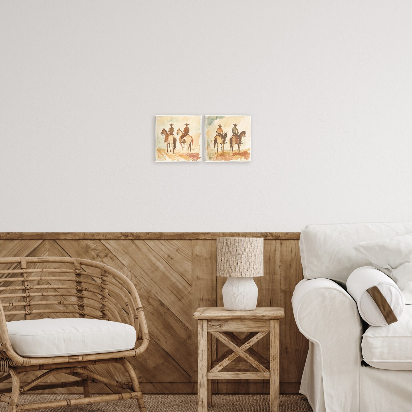 Stupell Industries Western Watercolor Cowboy Pairs 2pc Wall Plaque Set, design by Petal Prints Design