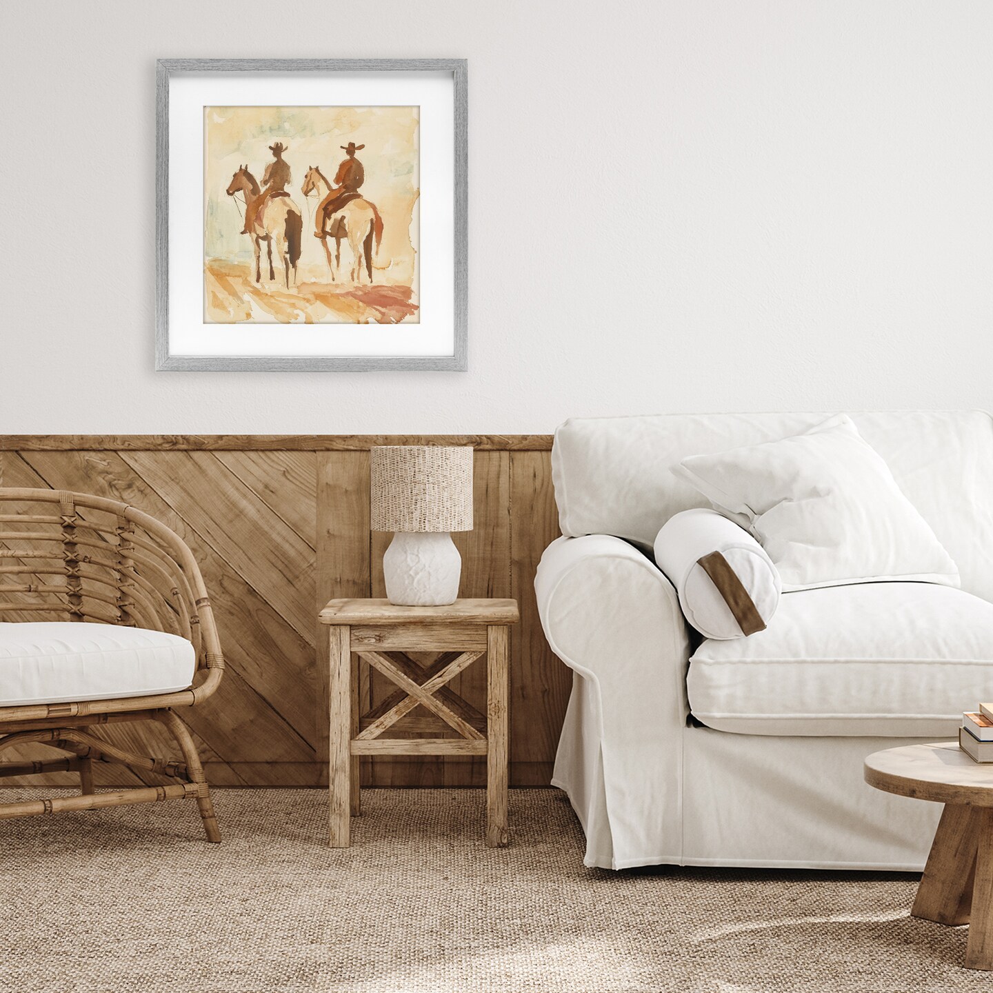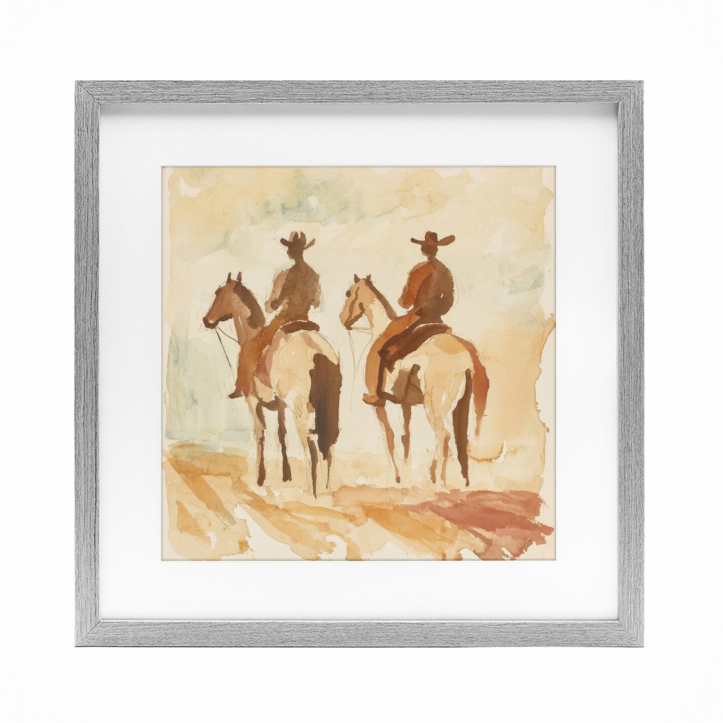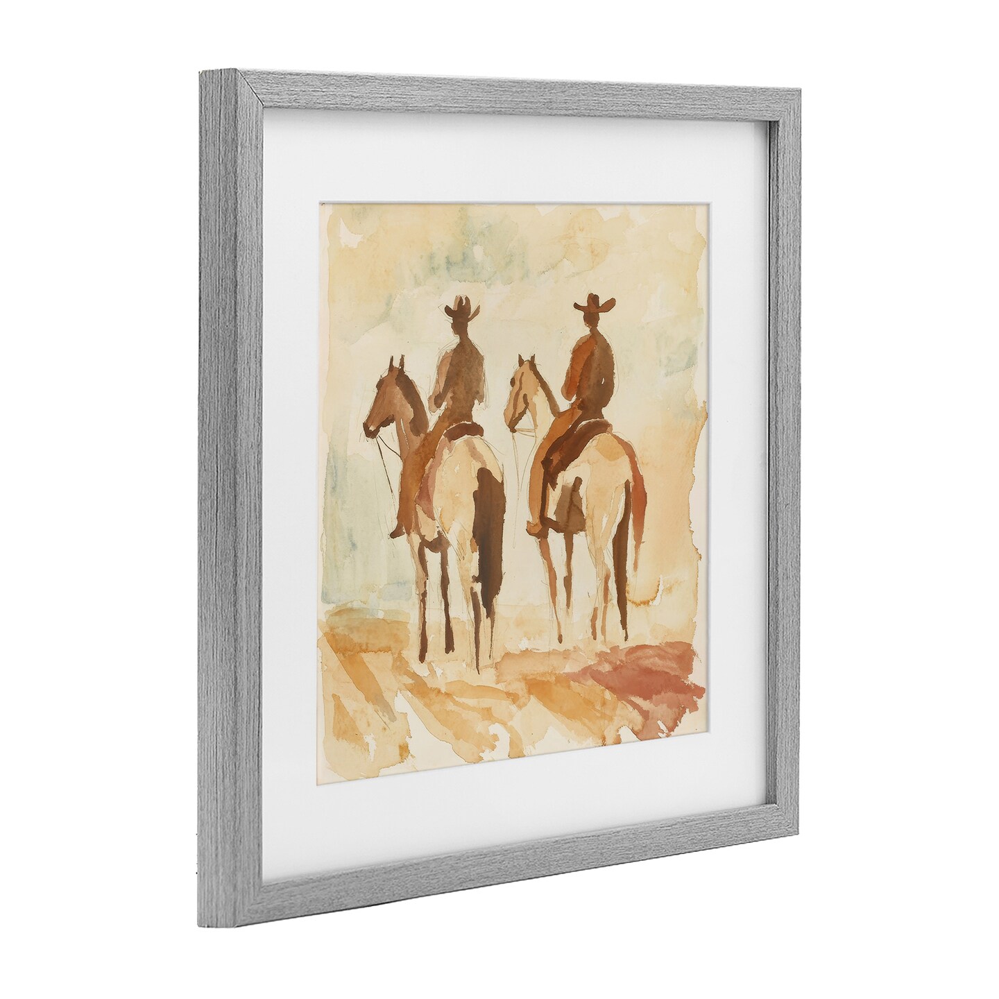 Stupell Industries Western Watercolor Cowboys Left Framed Print Under Glass, design by Petal Prints Design