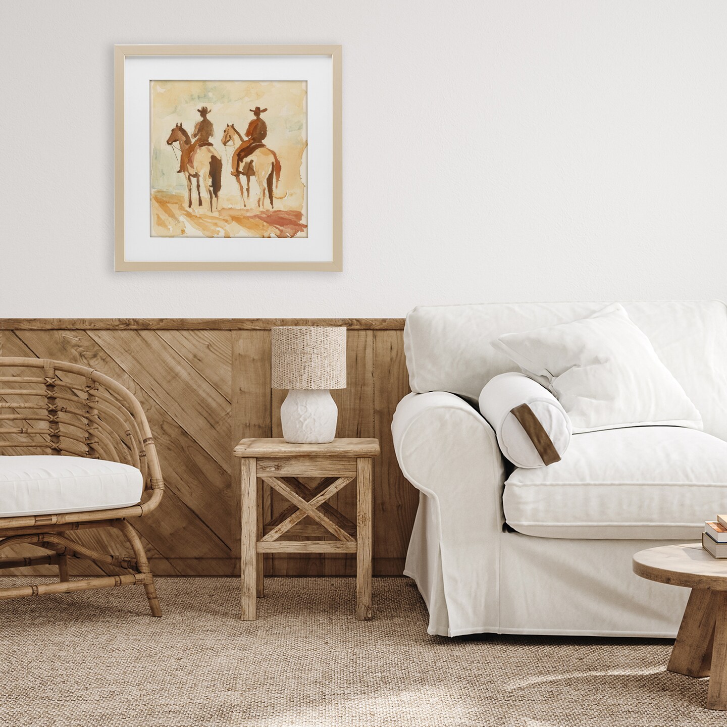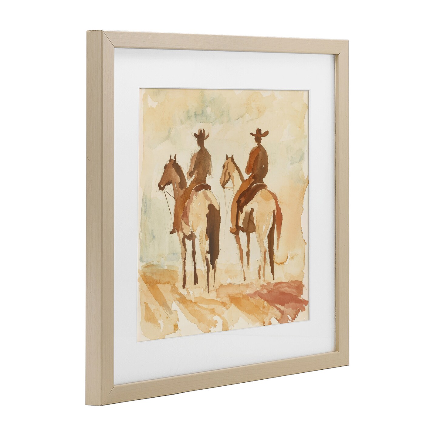 Stupell Industries Western Watercolor Cowboys Left Framed Print Under Glass, design by Petal Prints Design