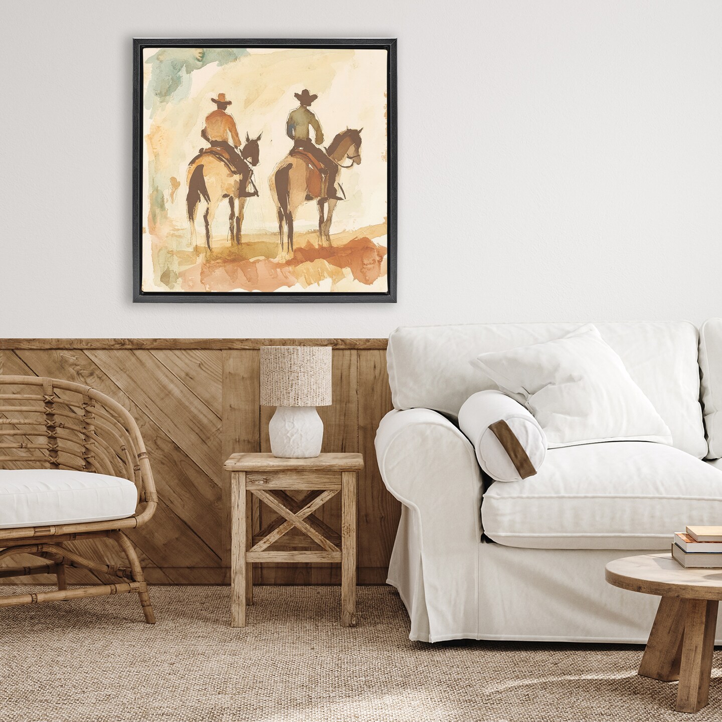Stupell Industries Western Watercolor Cowboys Right Floating Frame, design by Petal Prints Design