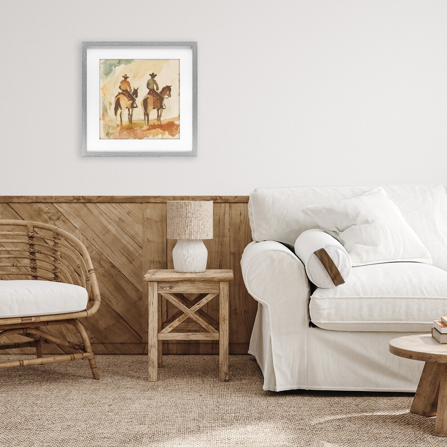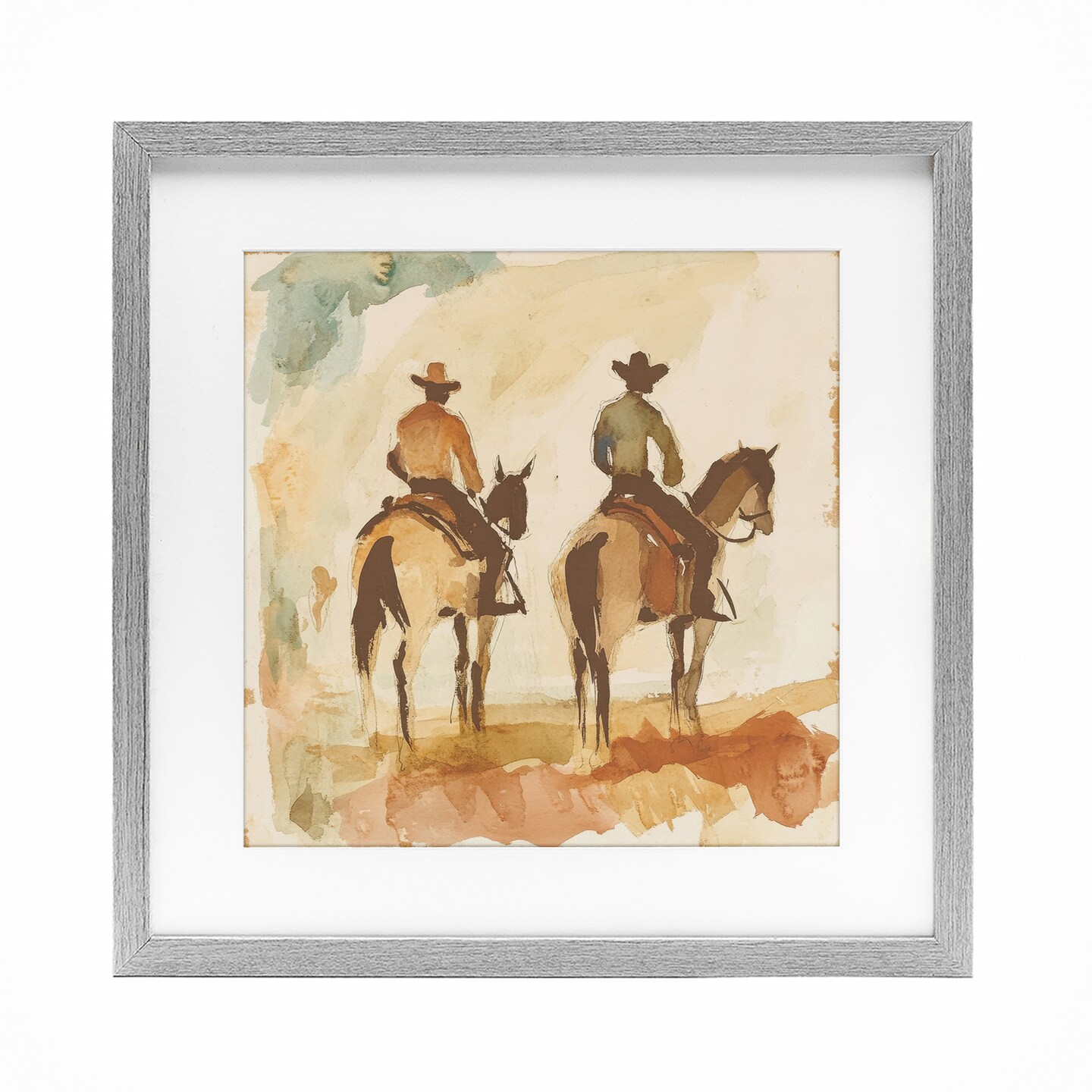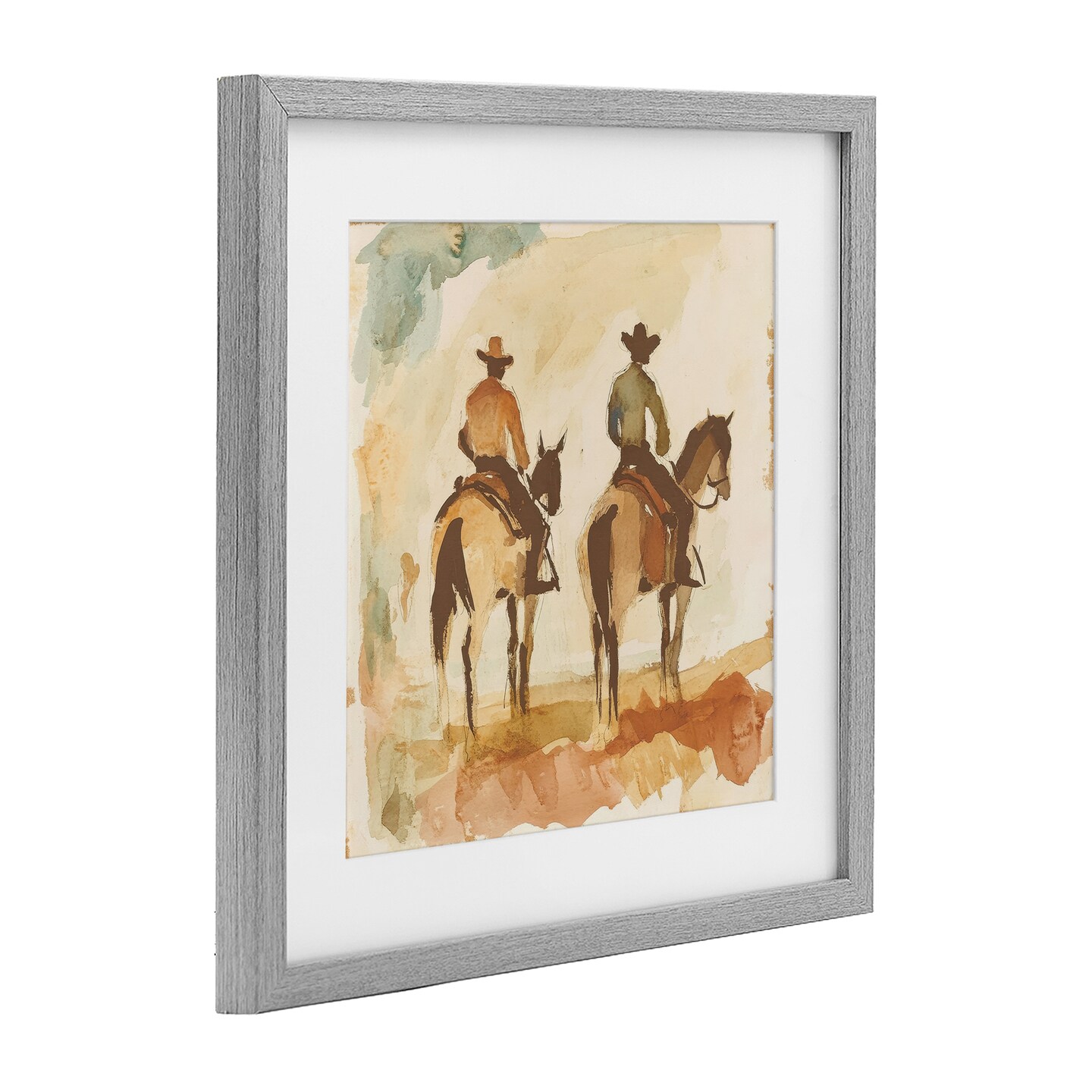 Stupell Industries Western Watercolor Cowboys Right Framed Print Under Glass, design by Petal Prints Design