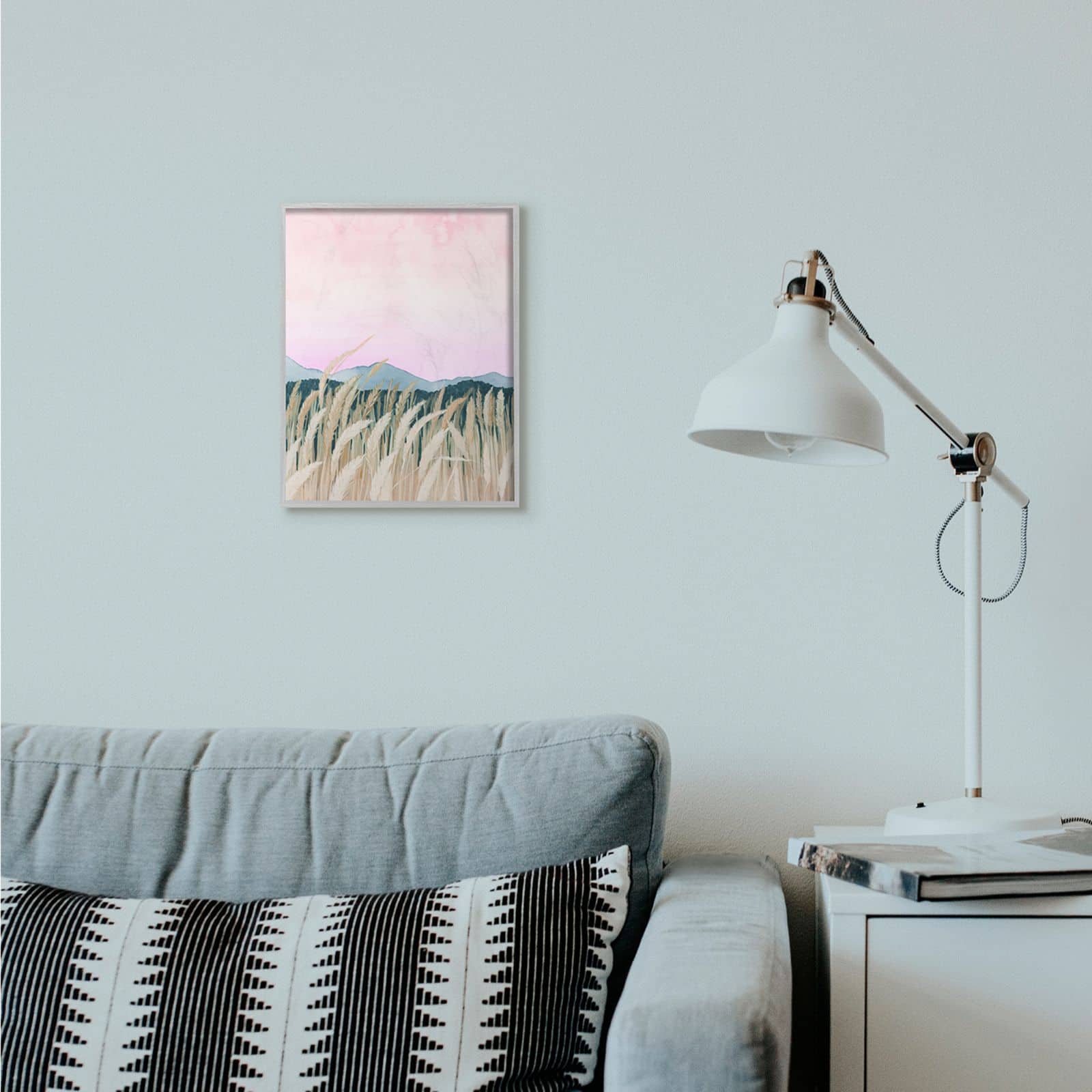 Stupell Industries Wheat Field Dawn Pink & Green Watercolor Painting Gray Framed Wall Art