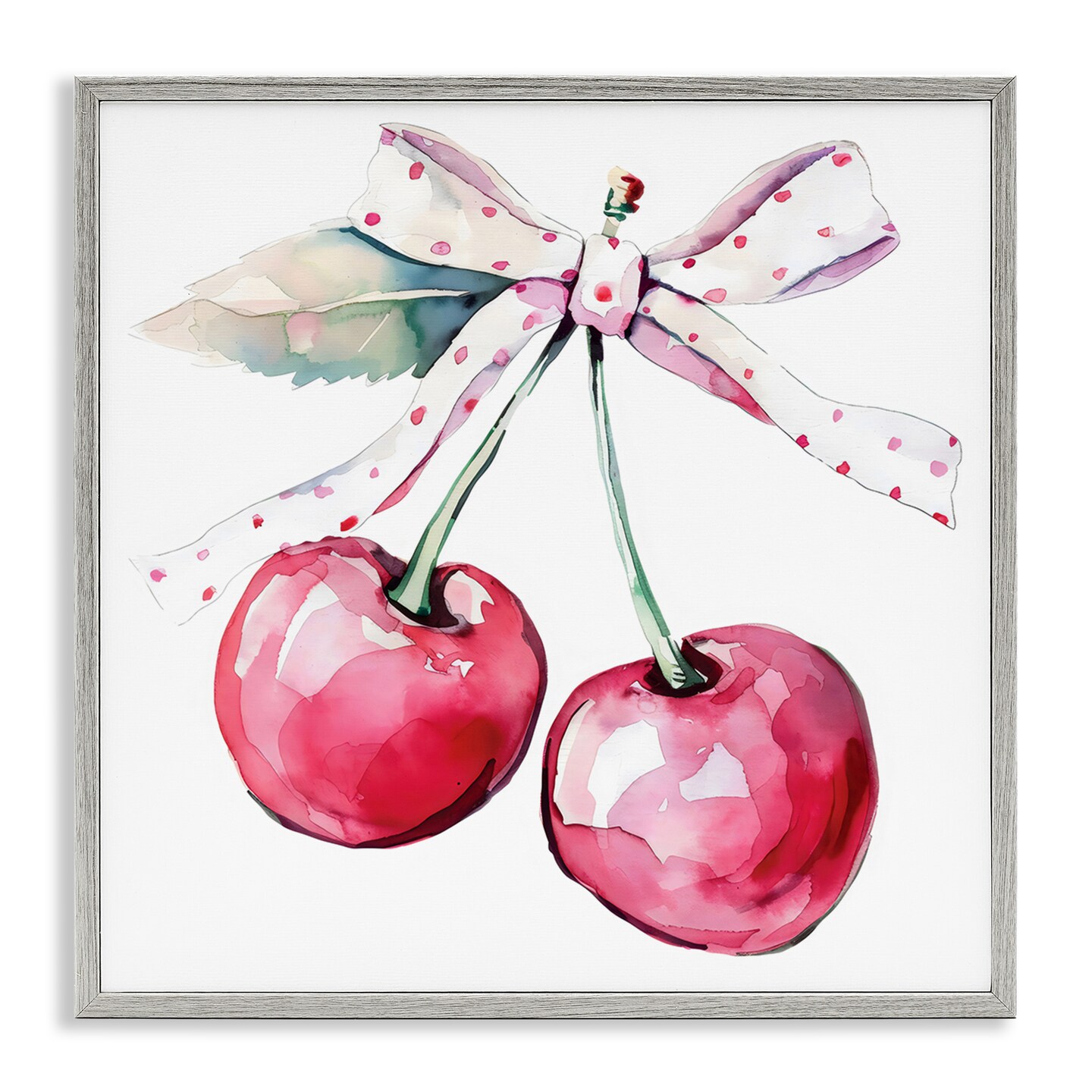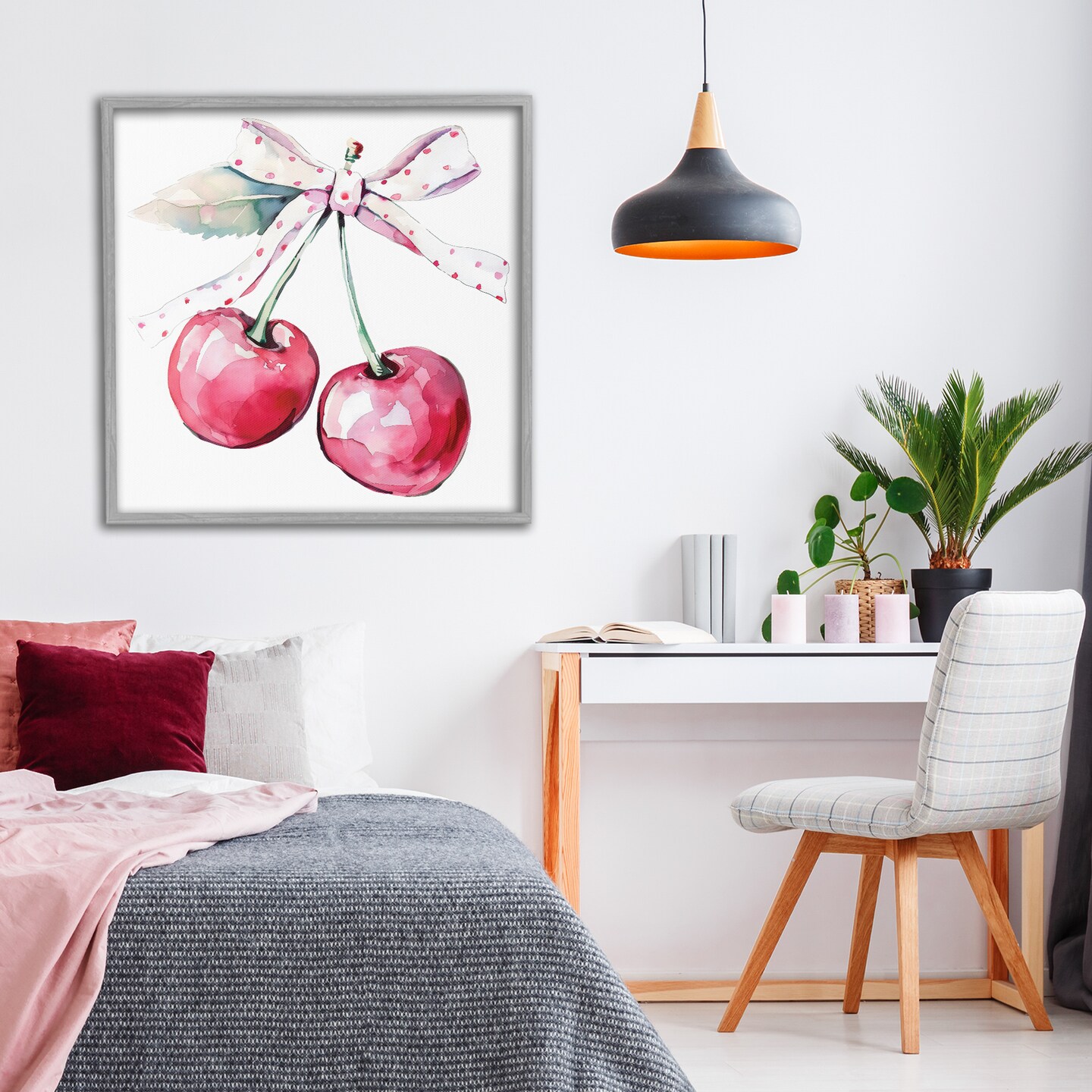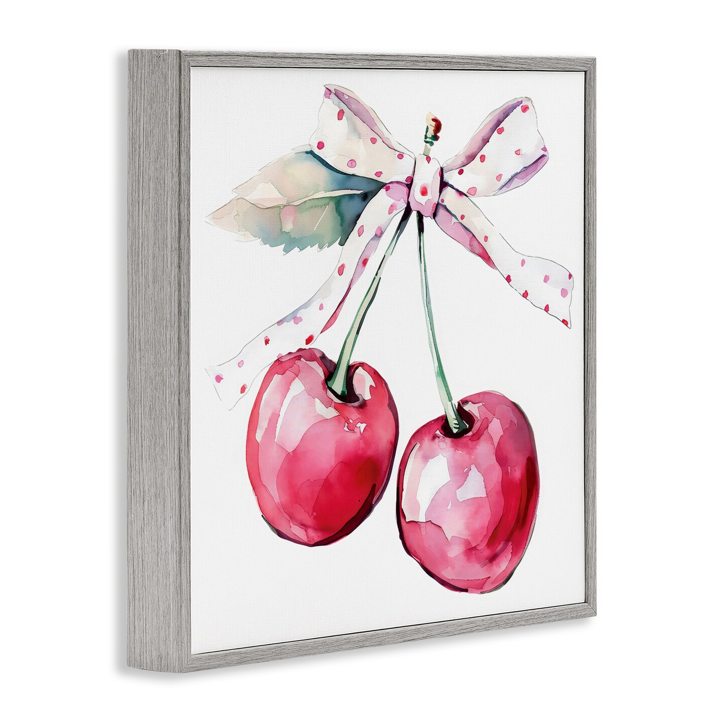 Stupell Industries Whimsical Cherries with Dotted Ribbon Framed Giclee, design by Creative Studio