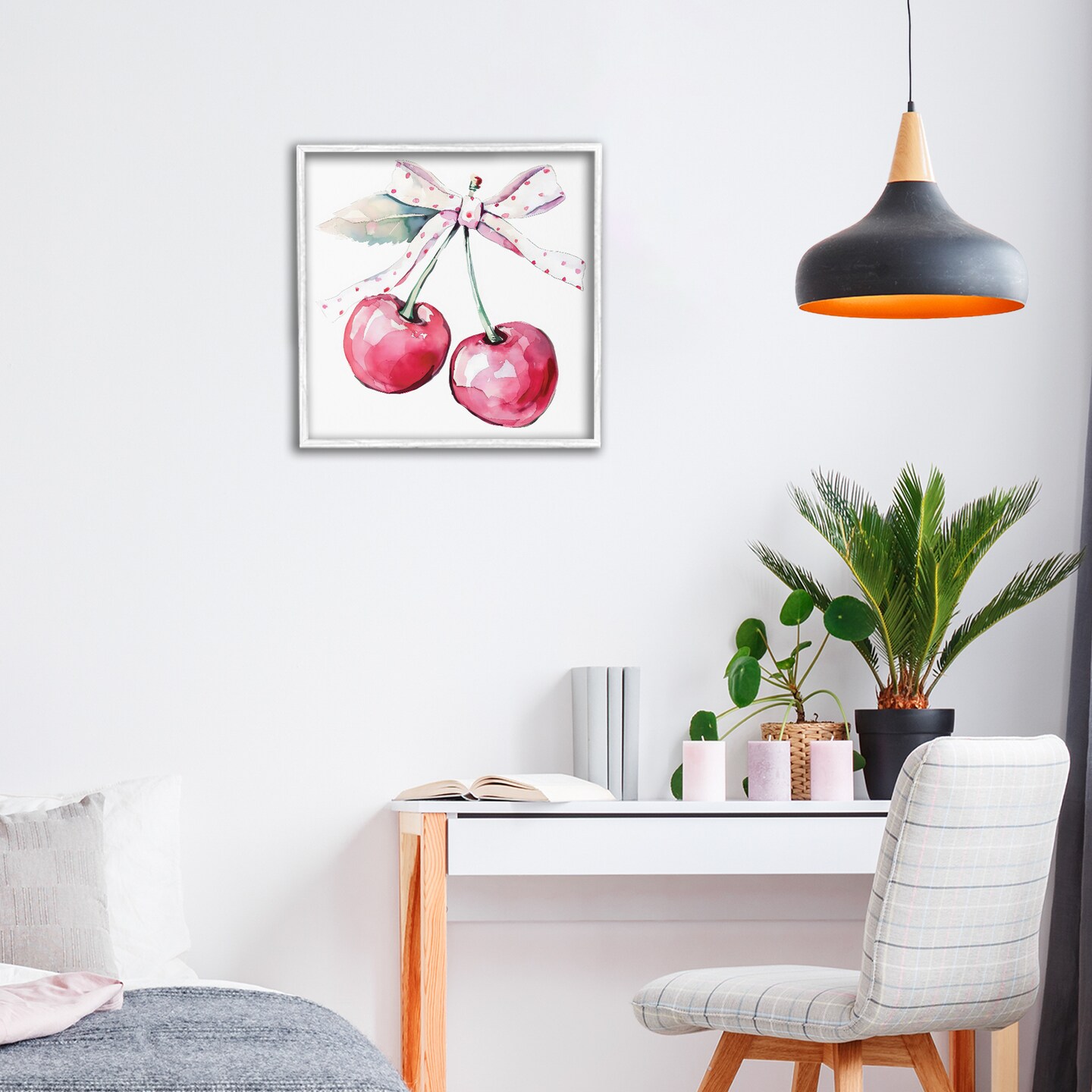 Stupell Industries Whimsical Cherries with Dotted Ribbon Framed Giclee, design by Creative Studio