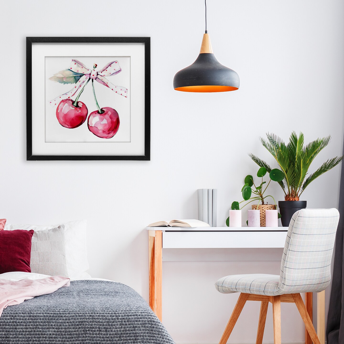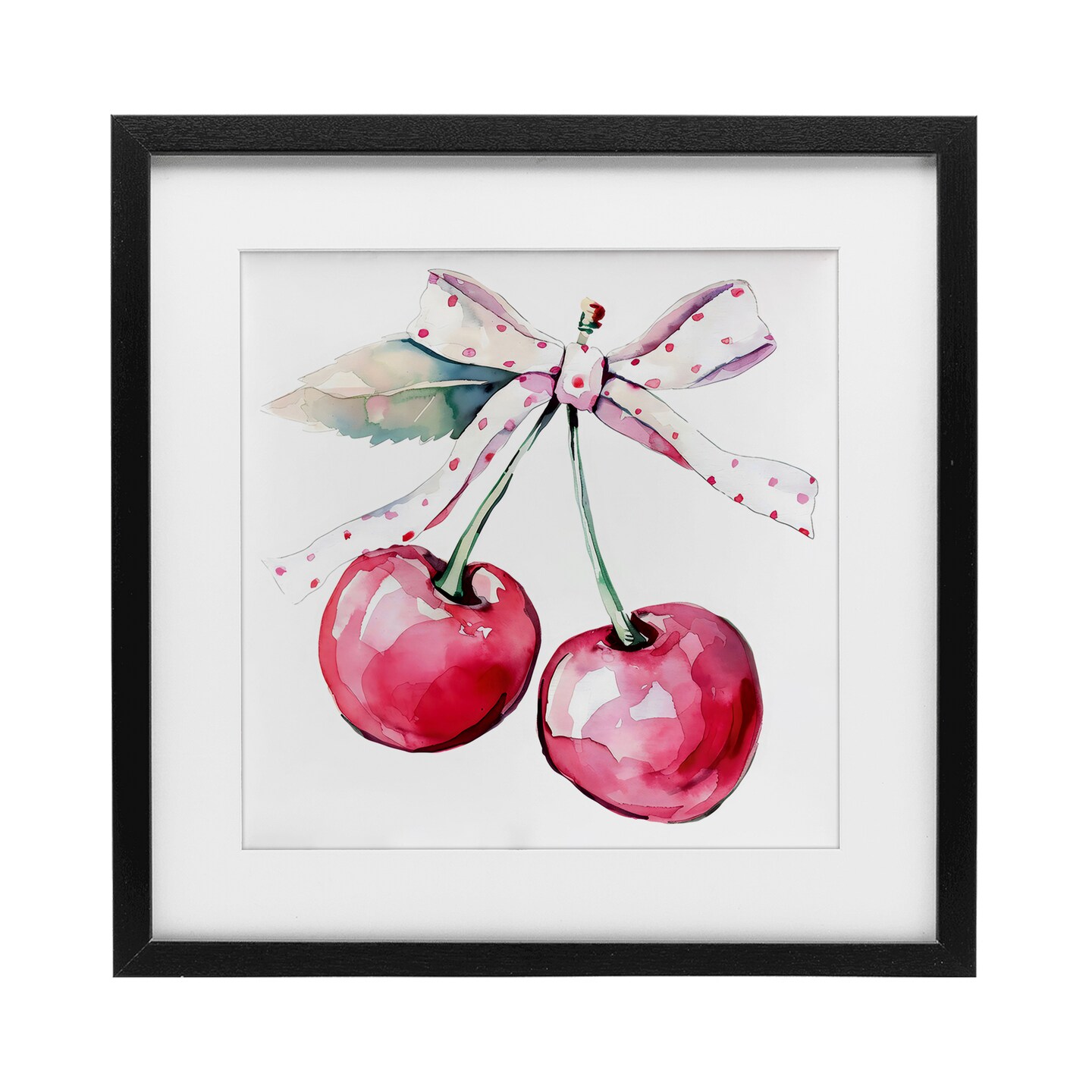 Stupell Industries Whimsical Cherries with Dotted Ribbon Framed Print Under Glass, design by Creative Studio