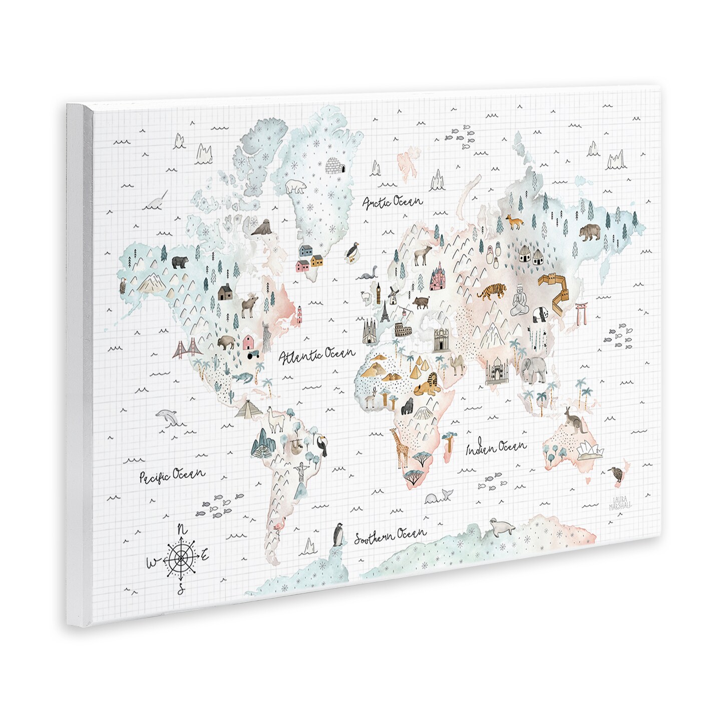 Stupell Industries Whimsical World Traveler Map Wall Plaque Art Design by Laura Marshall