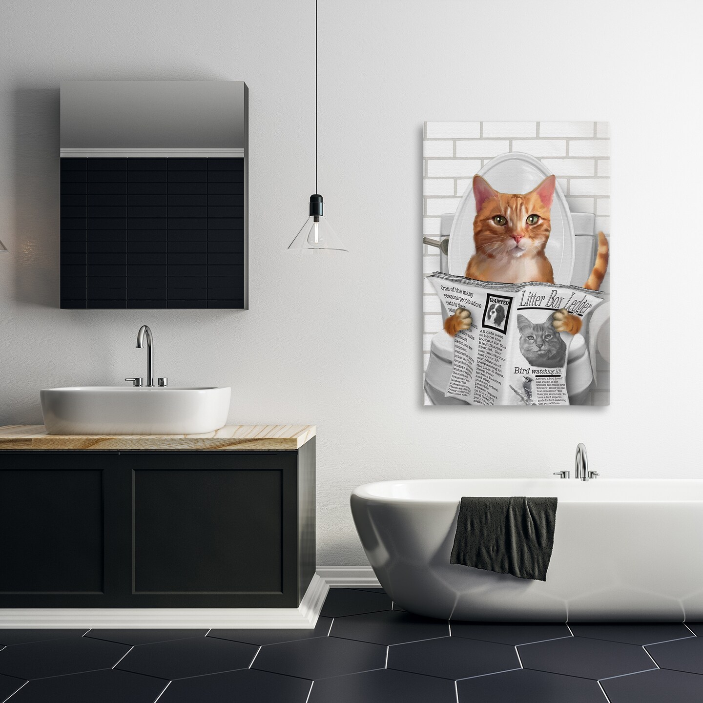 Stupell Industries Whimsy Cat on Toilet Canvas, design by Matthew Piotrowicz