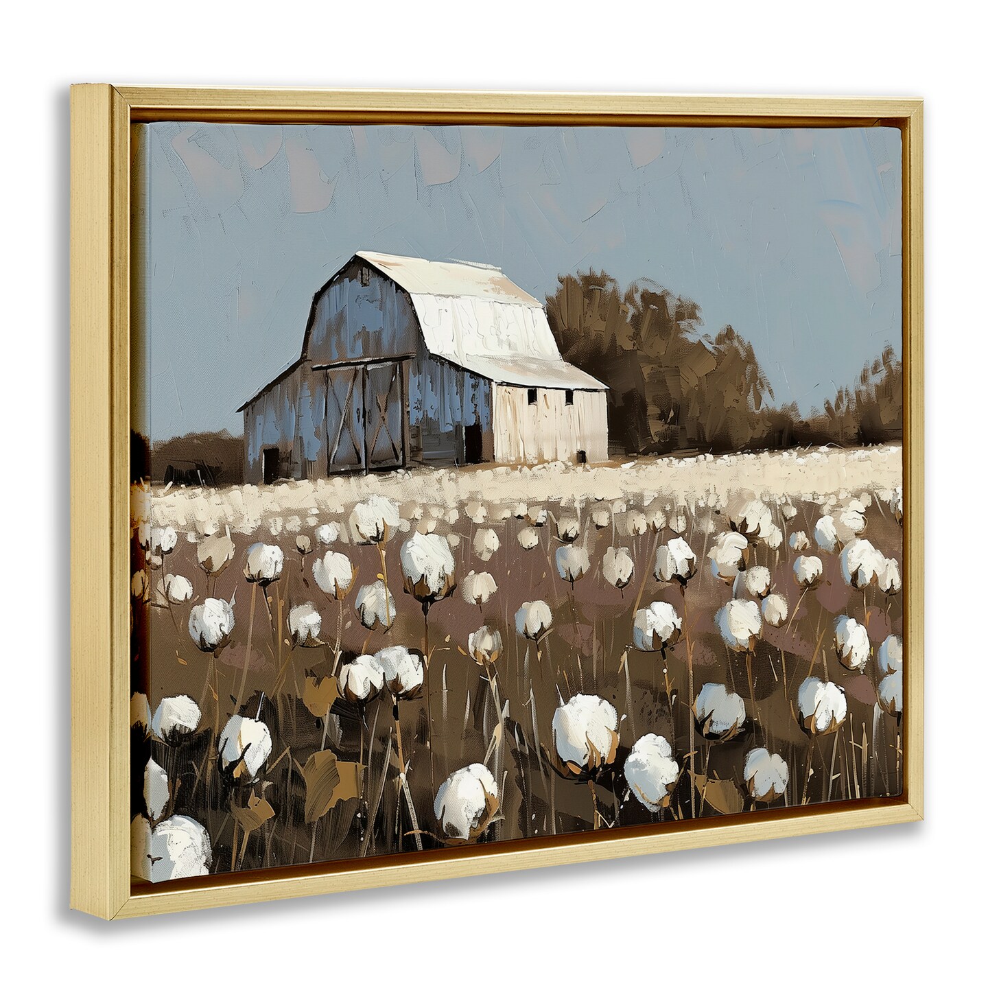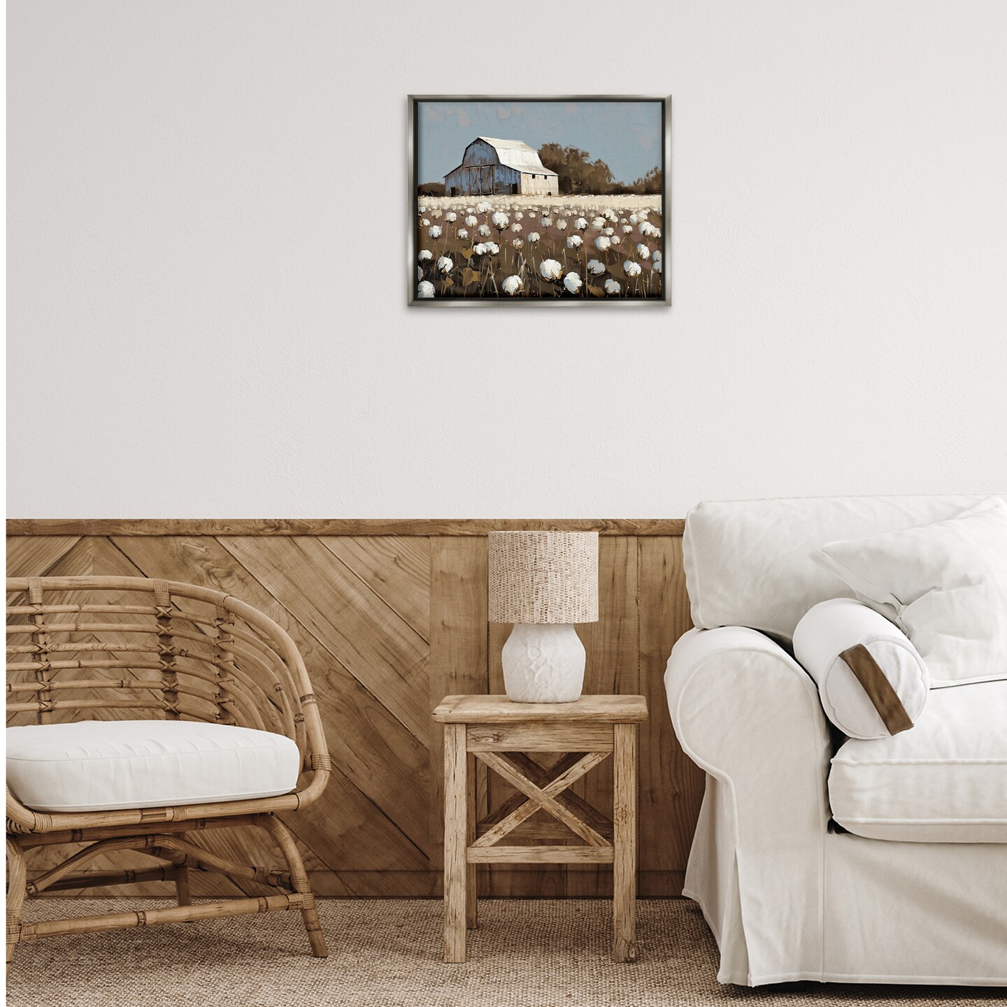 Stupell Industries White Barn in Cotton Field Floating Frame By Arlington Prints