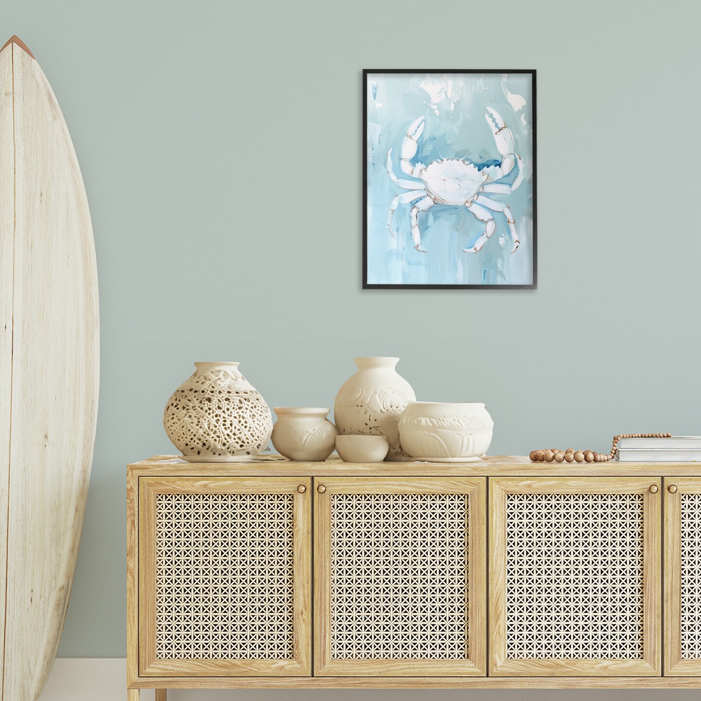 Stupell Industries White Coastal Crab Framed Giclee Wall Art Design by Arlington Prints