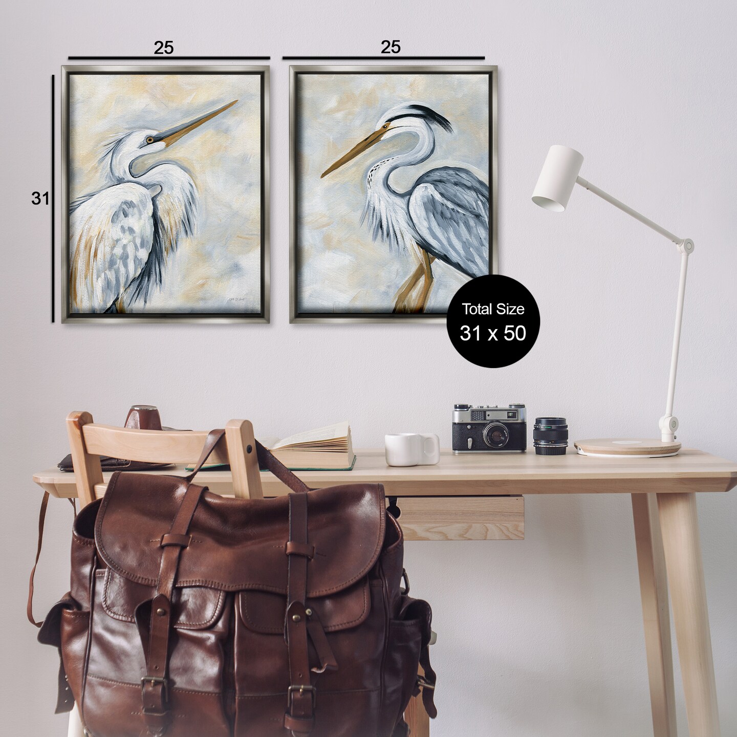 Stupell Industries White Egret Blue Heron 2 pc Framed Floater Canvas Wall Art Set Design by Yvette St. Amant
