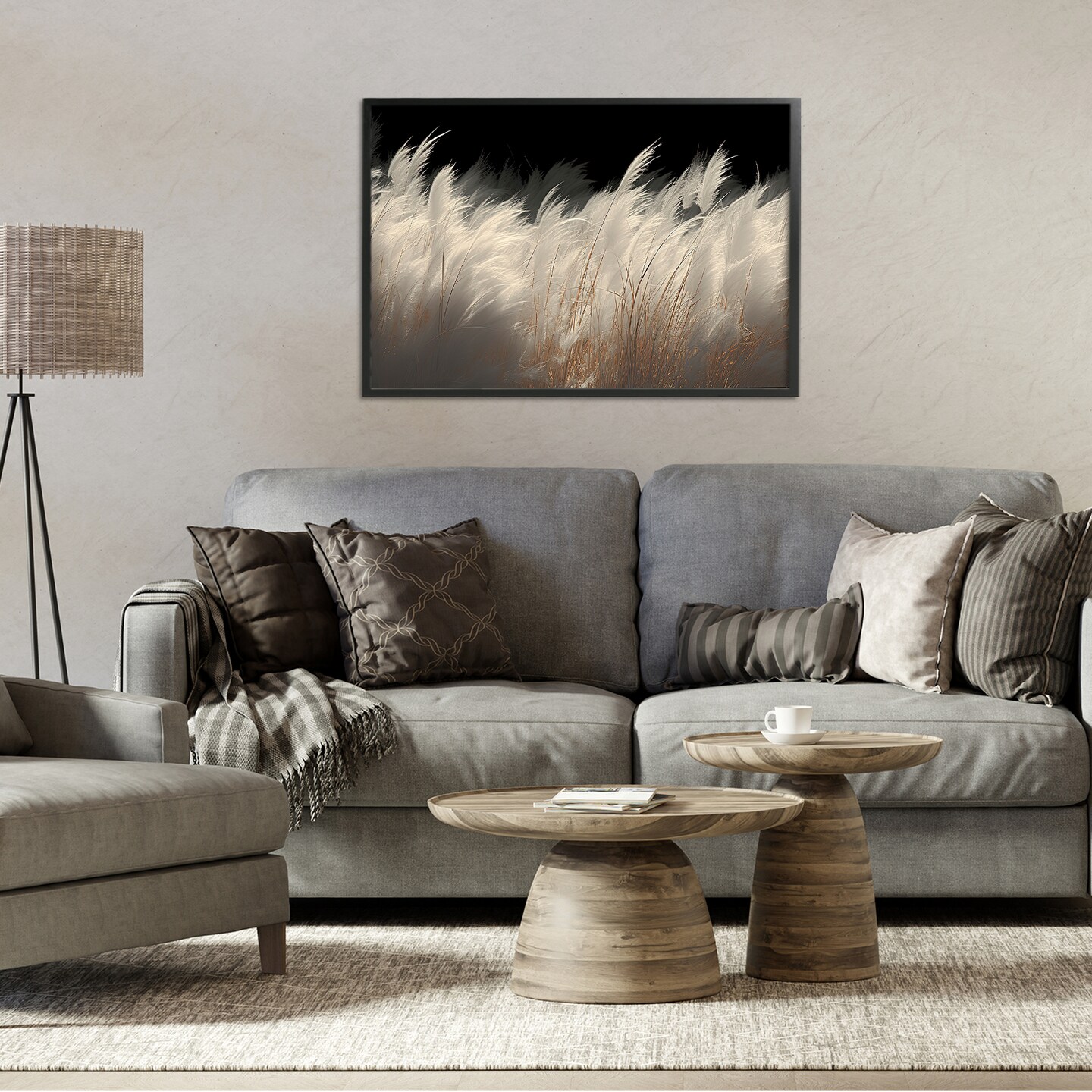 Stupell Industries White Feathers Windblown Grasses Framed Giclee, design by Decent Exposures