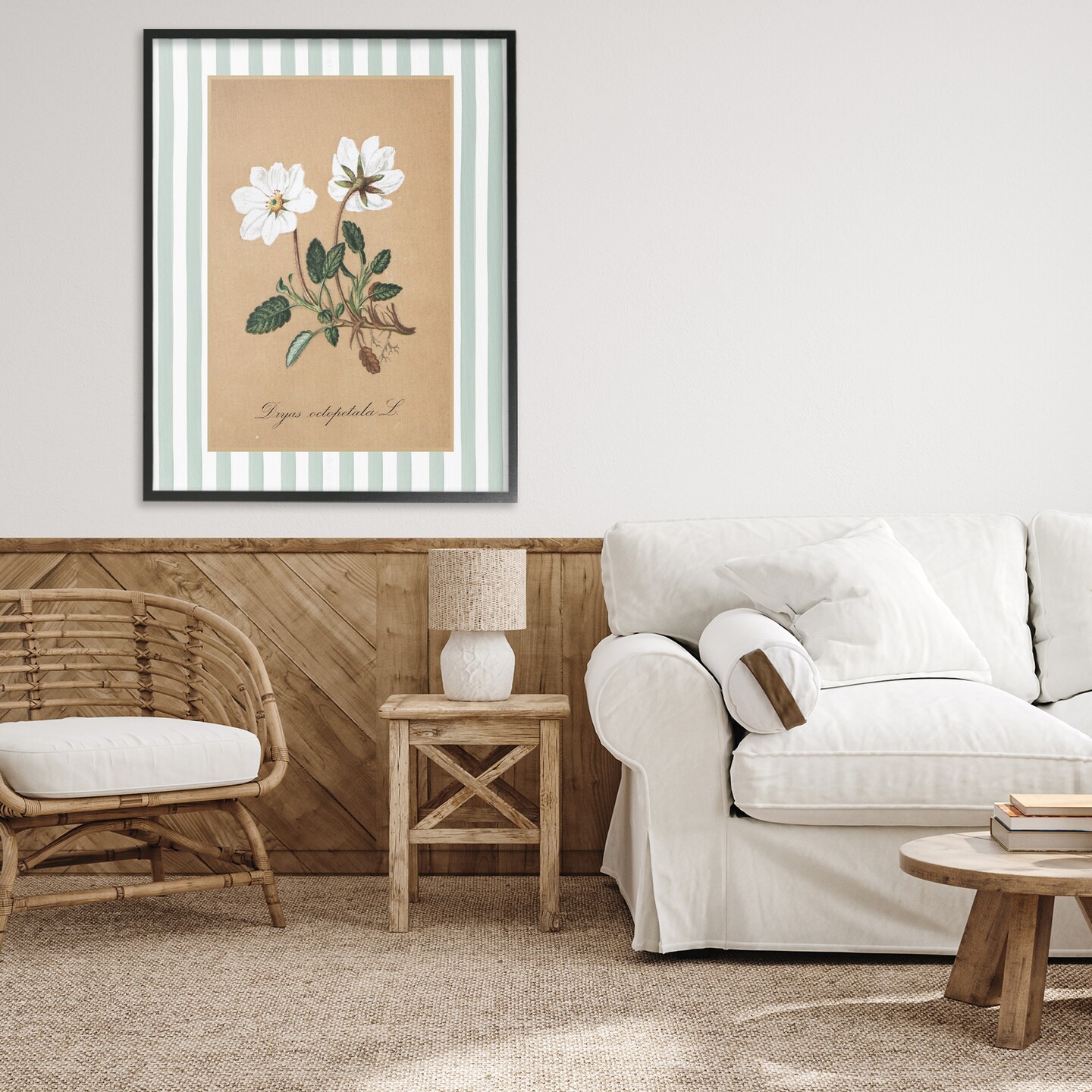Stupell Industries White Flower Green Stripes Framed Giclee, design by Lettered and Lined