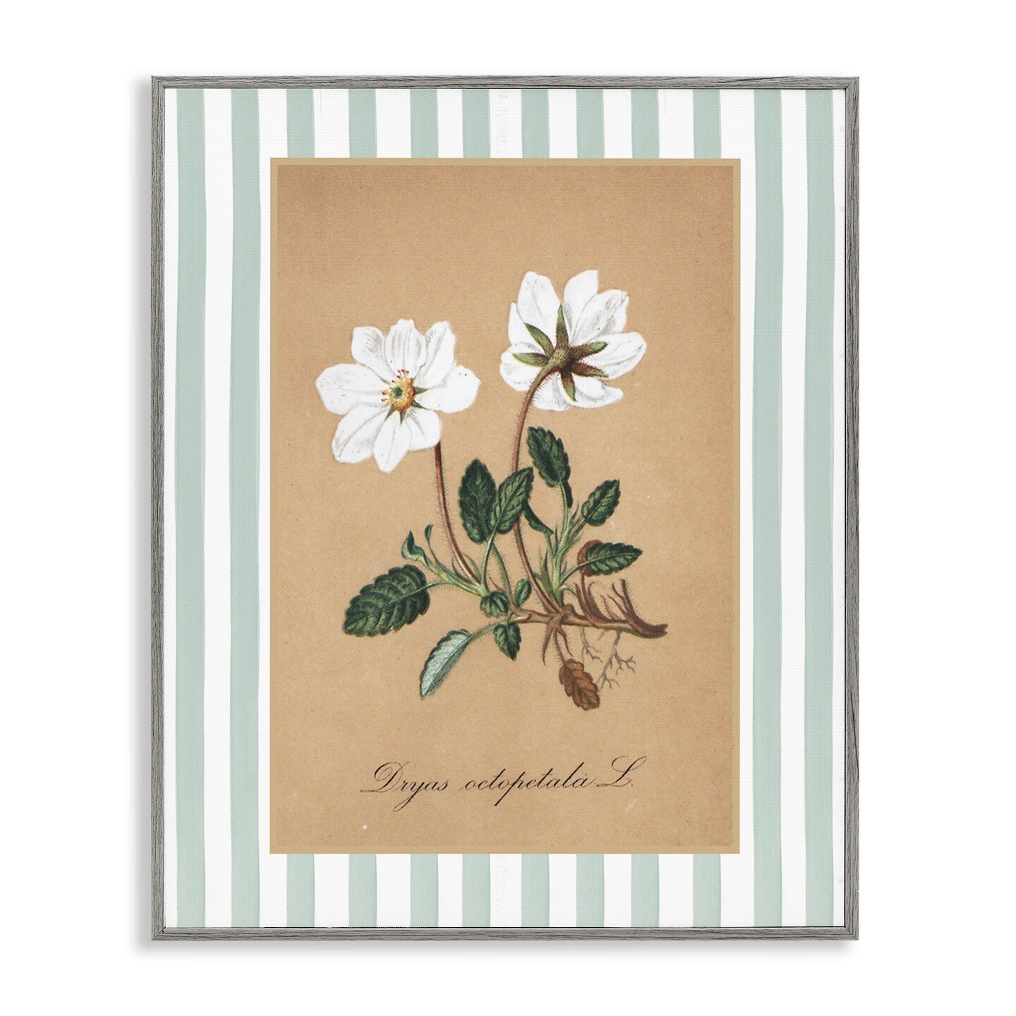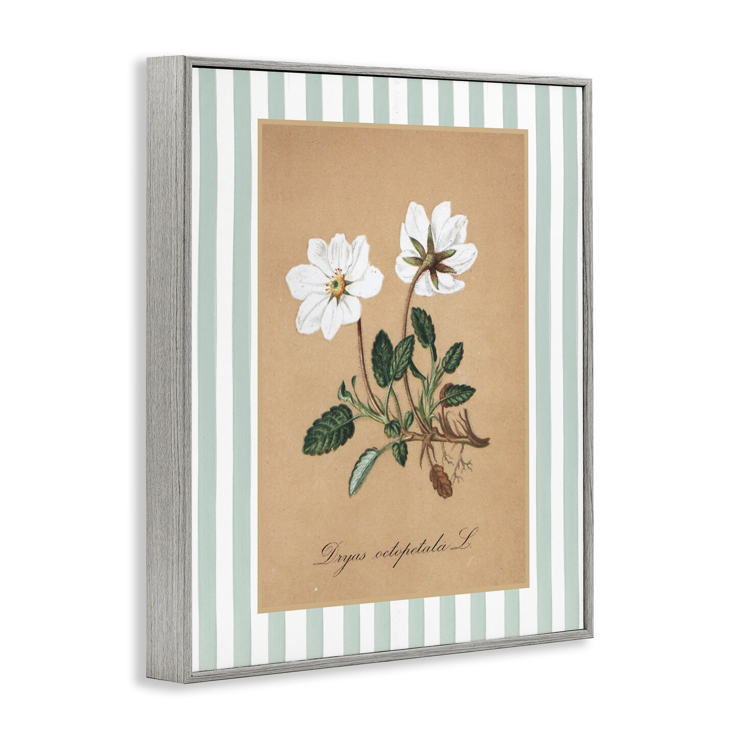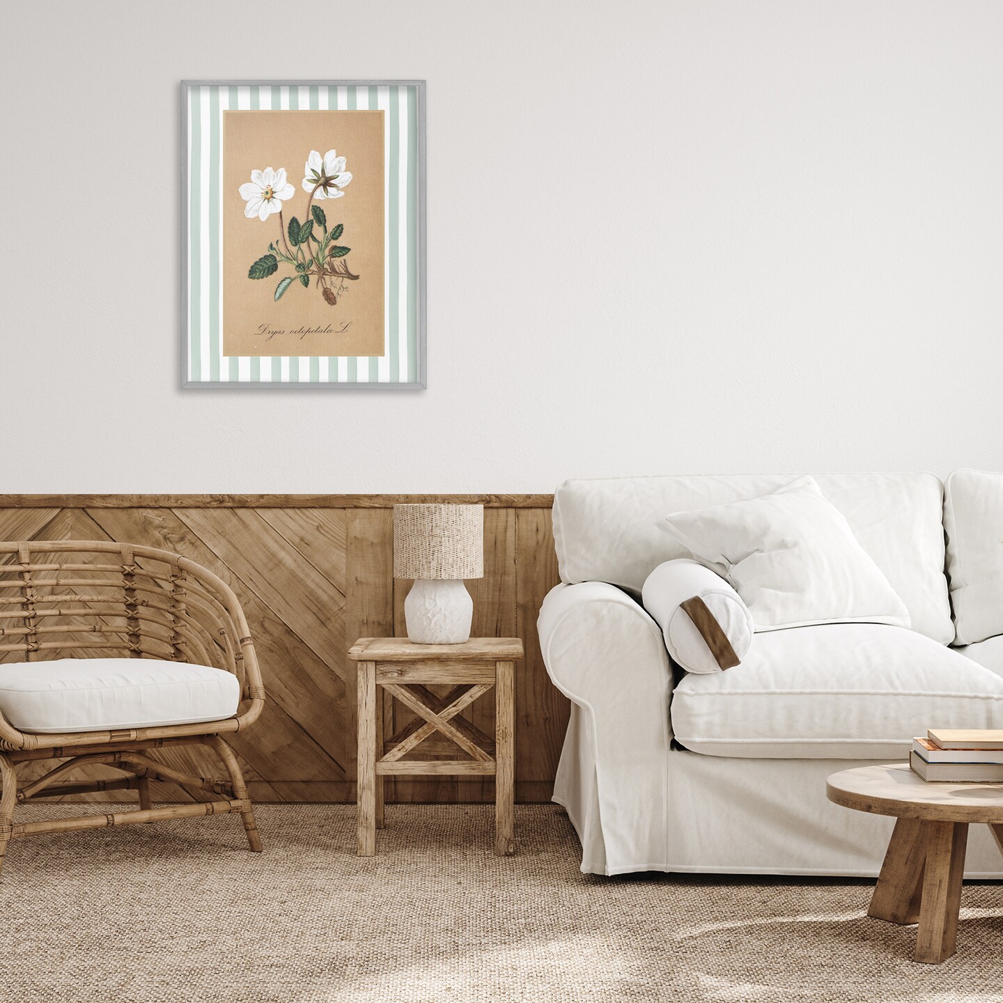 Stupell Industries White Flower Green Stripes Framed Giclee, design by Lettered and Lined