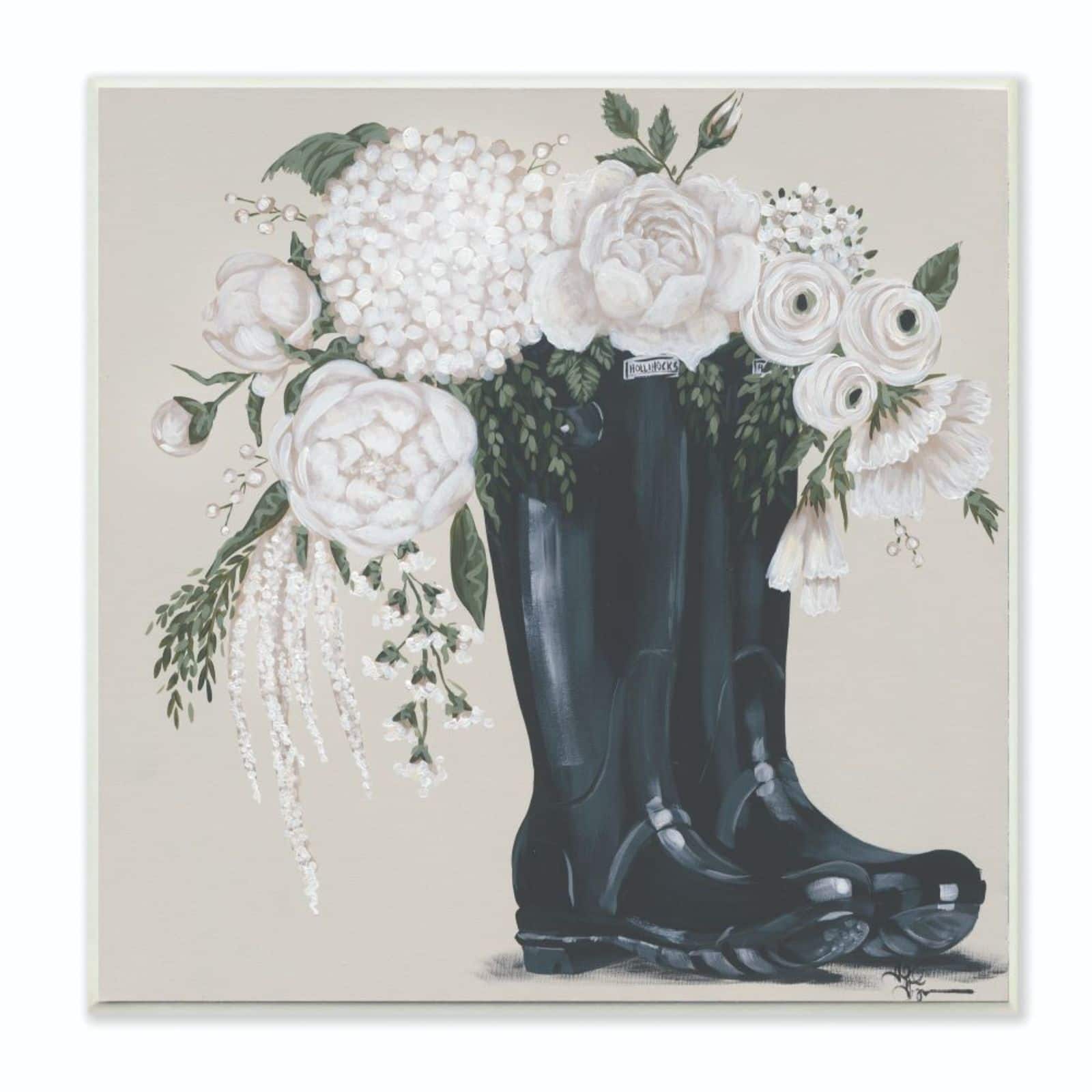 Stupell Industries White Flowers in Black Boots Wooden Wall Plaque