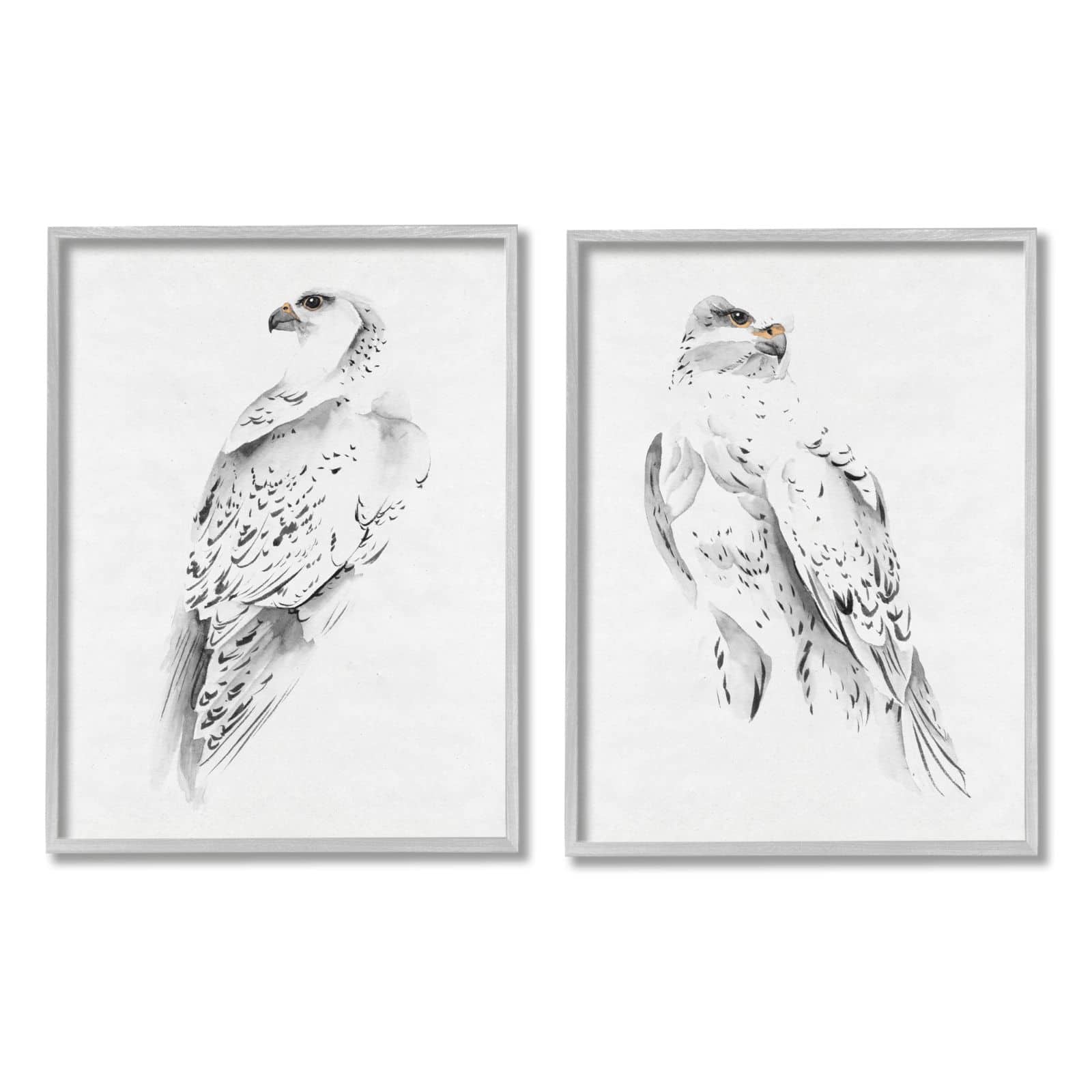 Stupell Industries White Hawk Winter Birds Soft Speckled Feathers Framed Wall Art